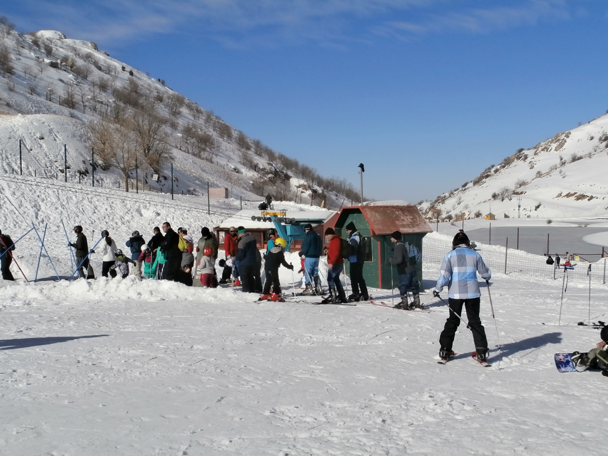 Выехала рано утром, в 5:30. В 7:50 уже была на входе в атар, платила денежку. В этот час здесь были в основном желающие покататься на лыжах и сноубордах. Автобусы с теми, кто едет на Хермон с экскурсией от работы просто потусоваться и поглазеть, появились гораздо позже и было их более сорока (не поленилась посчитать, когда ехала на подьемнике).