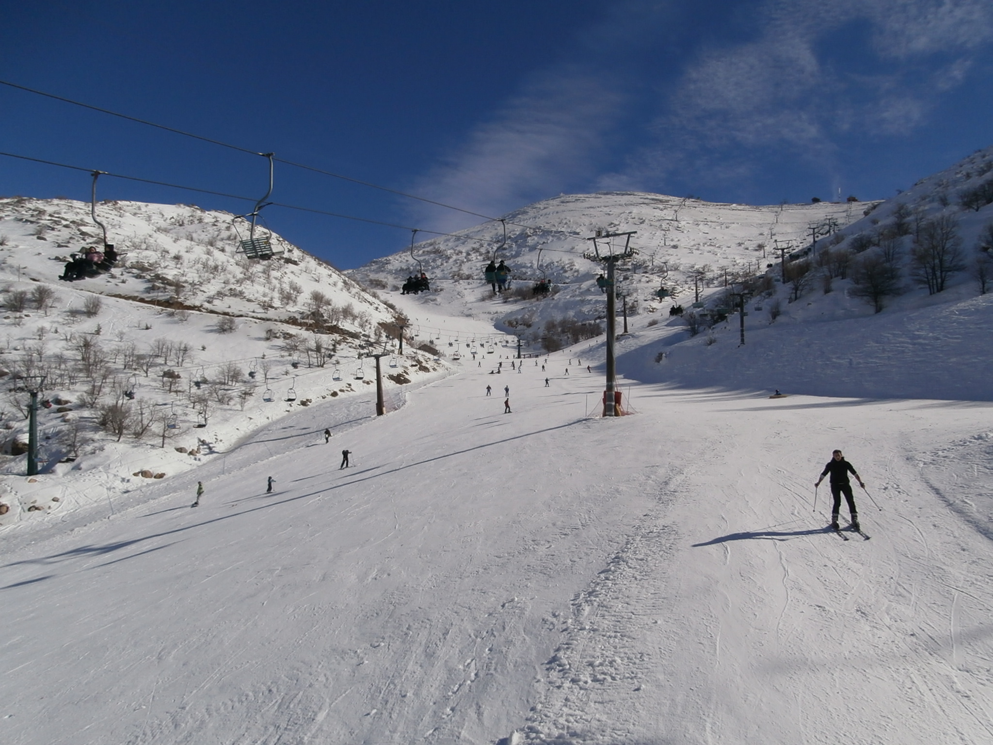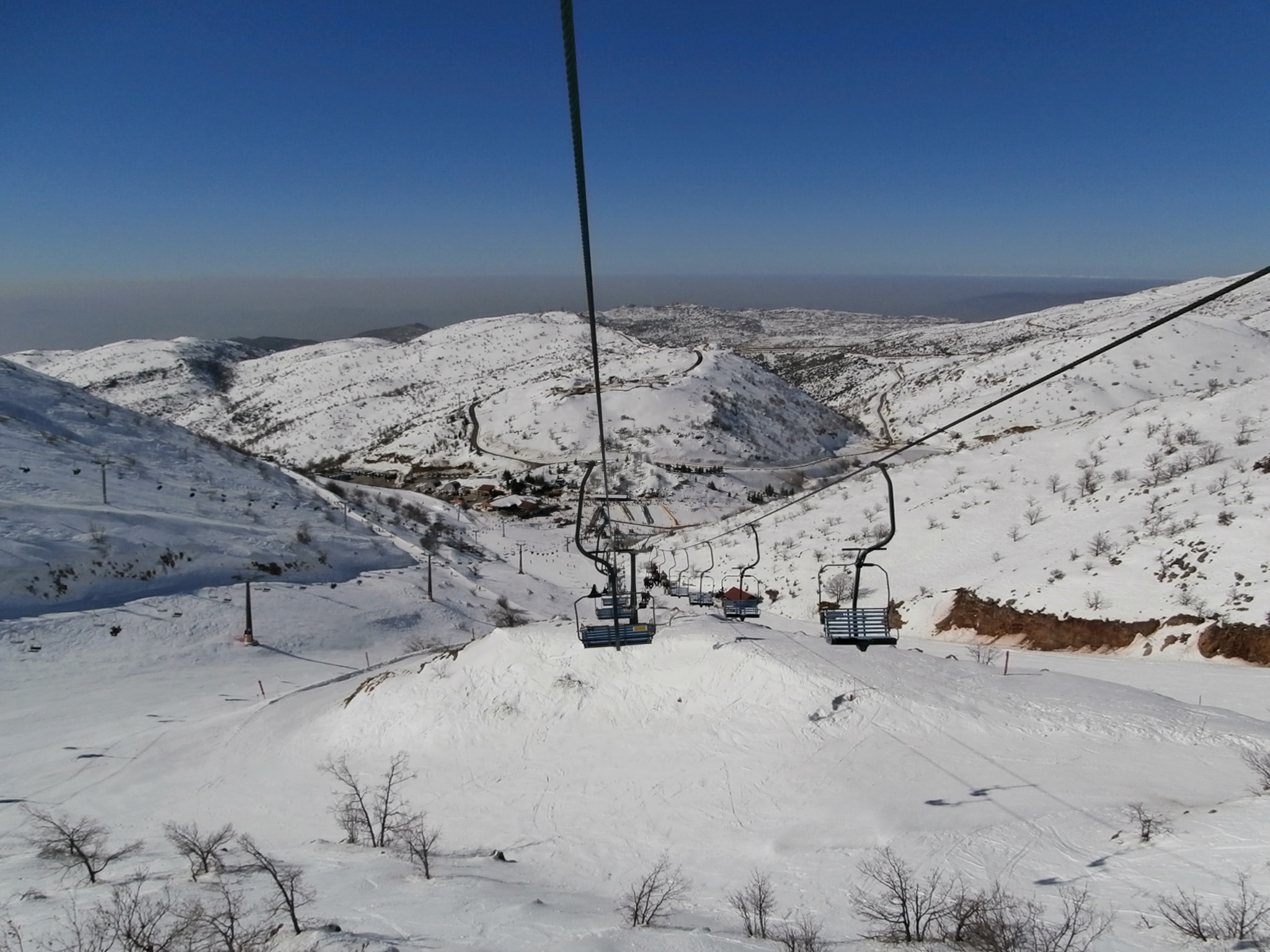 Вконец осмелевши, я решила подняться на вершину, чтобы спуститься по трассе с поэтическим названием «Вади Хатуль», красного, кстати, цвета. Желающих подняться туда было немного. Безо всякой очереди я разместилась в кресле подъемника, и поехали. Залюбовавшись открывшимися мне видами, решила сфотографировать эту красоту и достала фотик. И точно в этот момент обе палки благополучно улетели вниз. Фадиха номер 3, к счастью, последняя.
