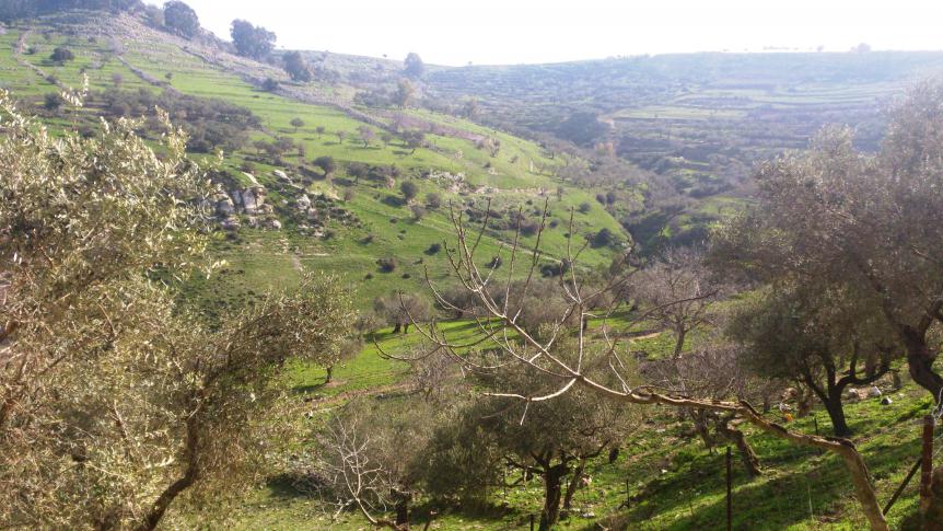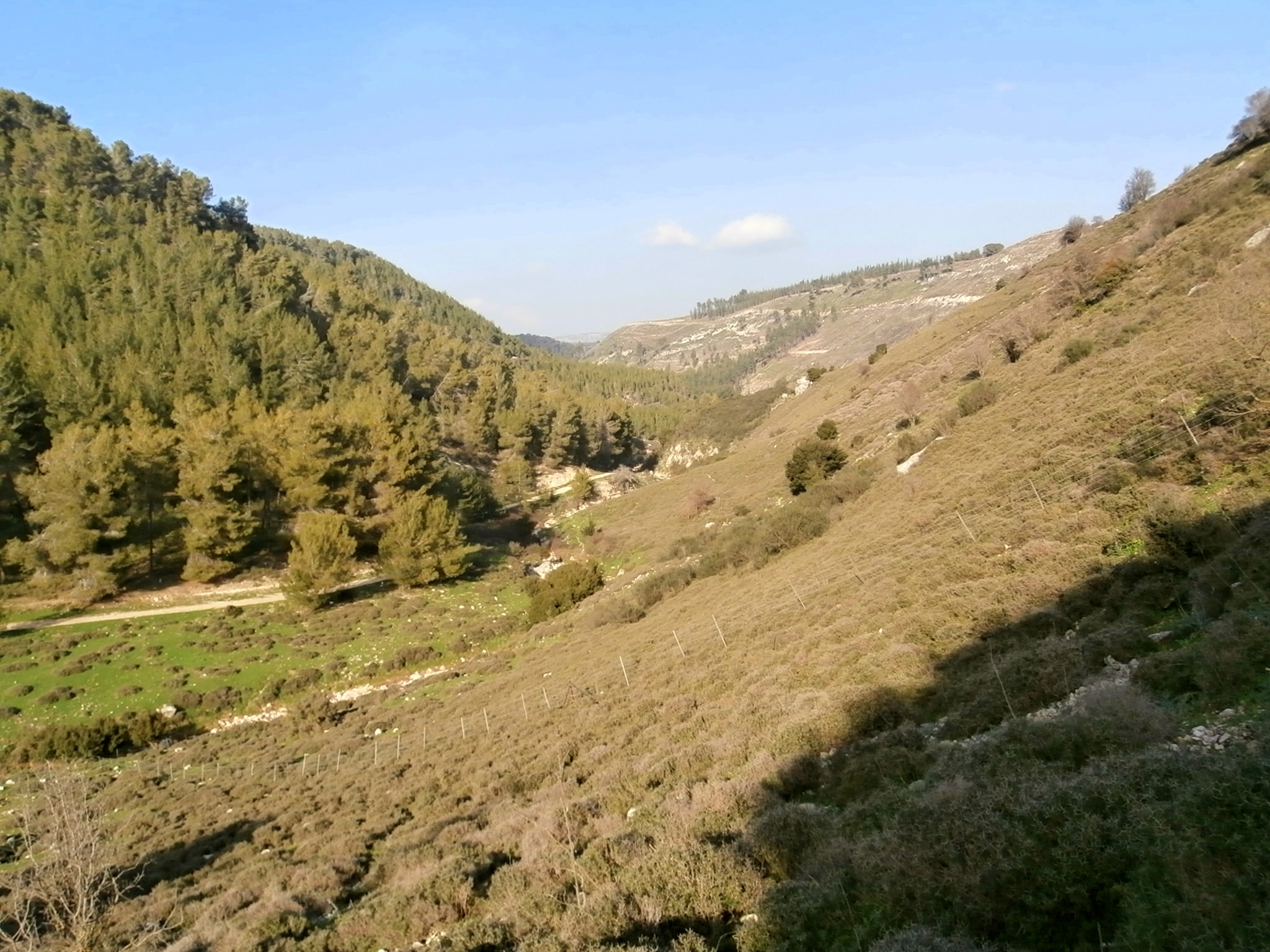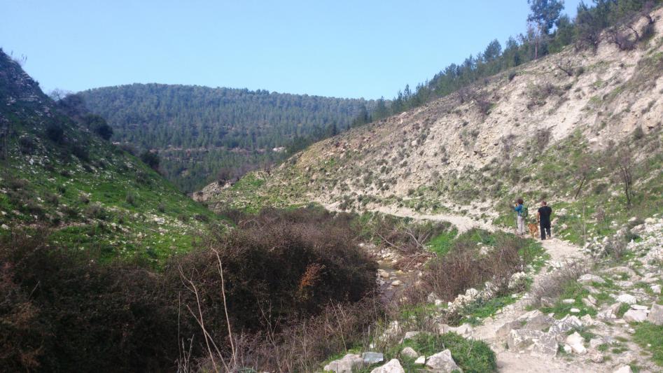 В 10:15 мы наконец добрались до деревни Гуш Халяв, нашли тропу с зеленой разметкой и вышли в путь: трое плюс собака.