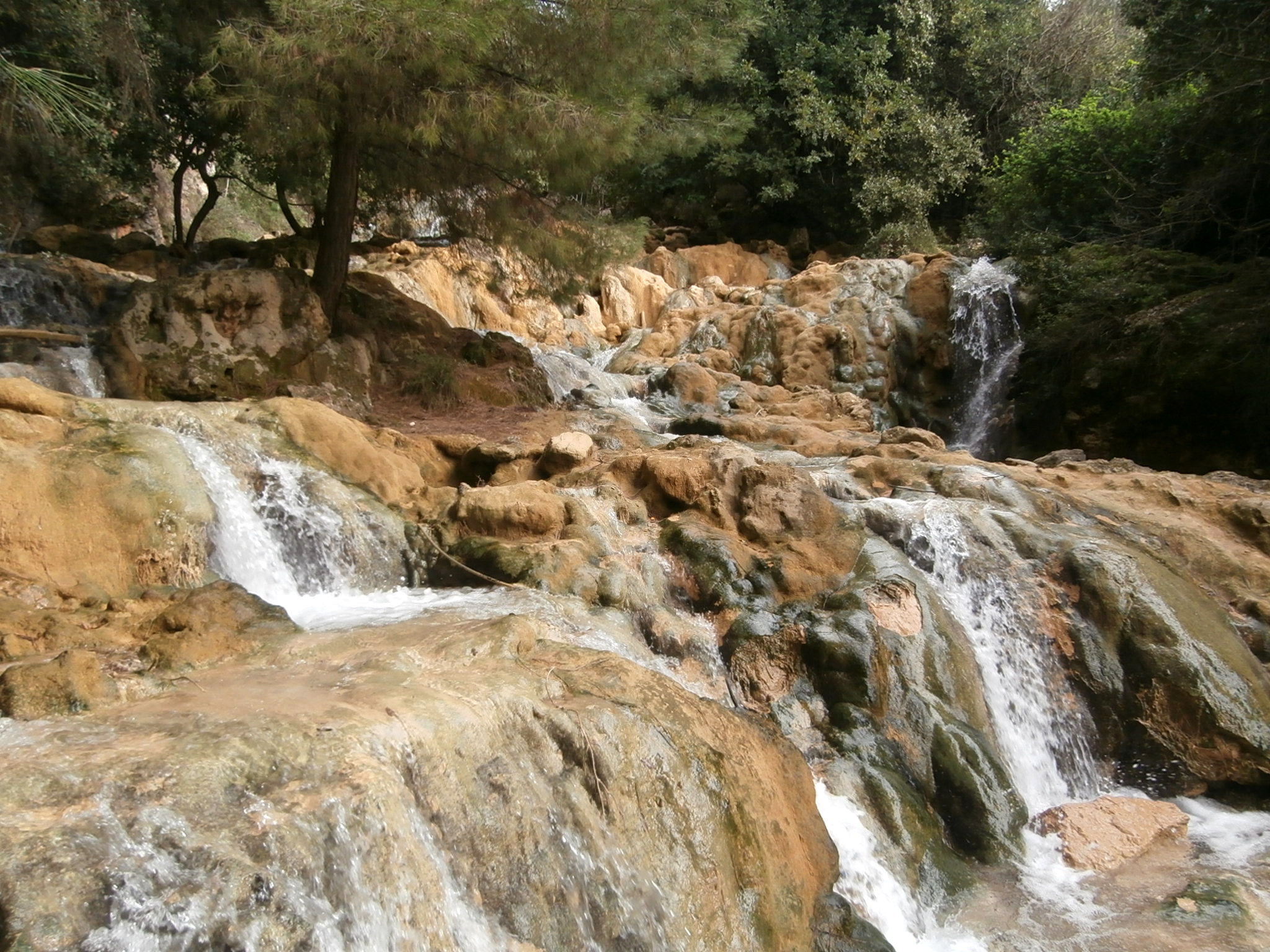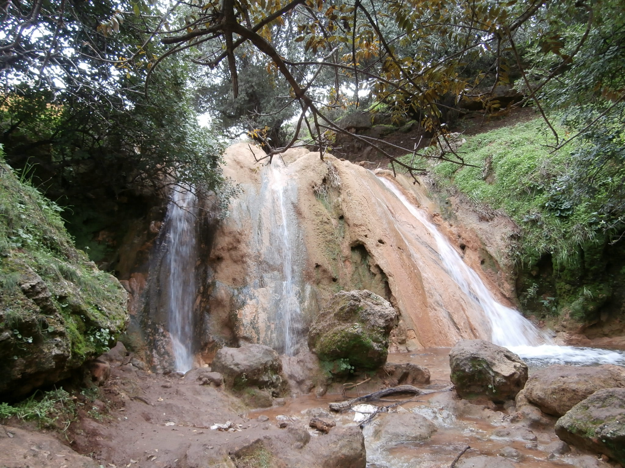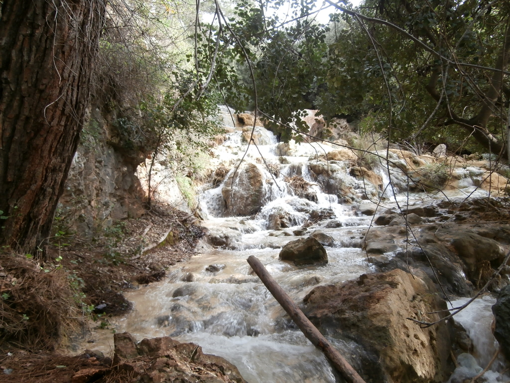 В 7:50 мы сделали первую остановку недалеко от кибуца Парод. Шум текущей воды был слышен уже на стоянке. Мы просто пошли вдоль ручья, набрели на могилы праведников, а вскоре увидели и водопады Парод, один, а затем второй. Они находятся в верхнем течении ручья Цальмон, а называются в народе так, а не иначе, видимо, по имени источника Эйн Парод.