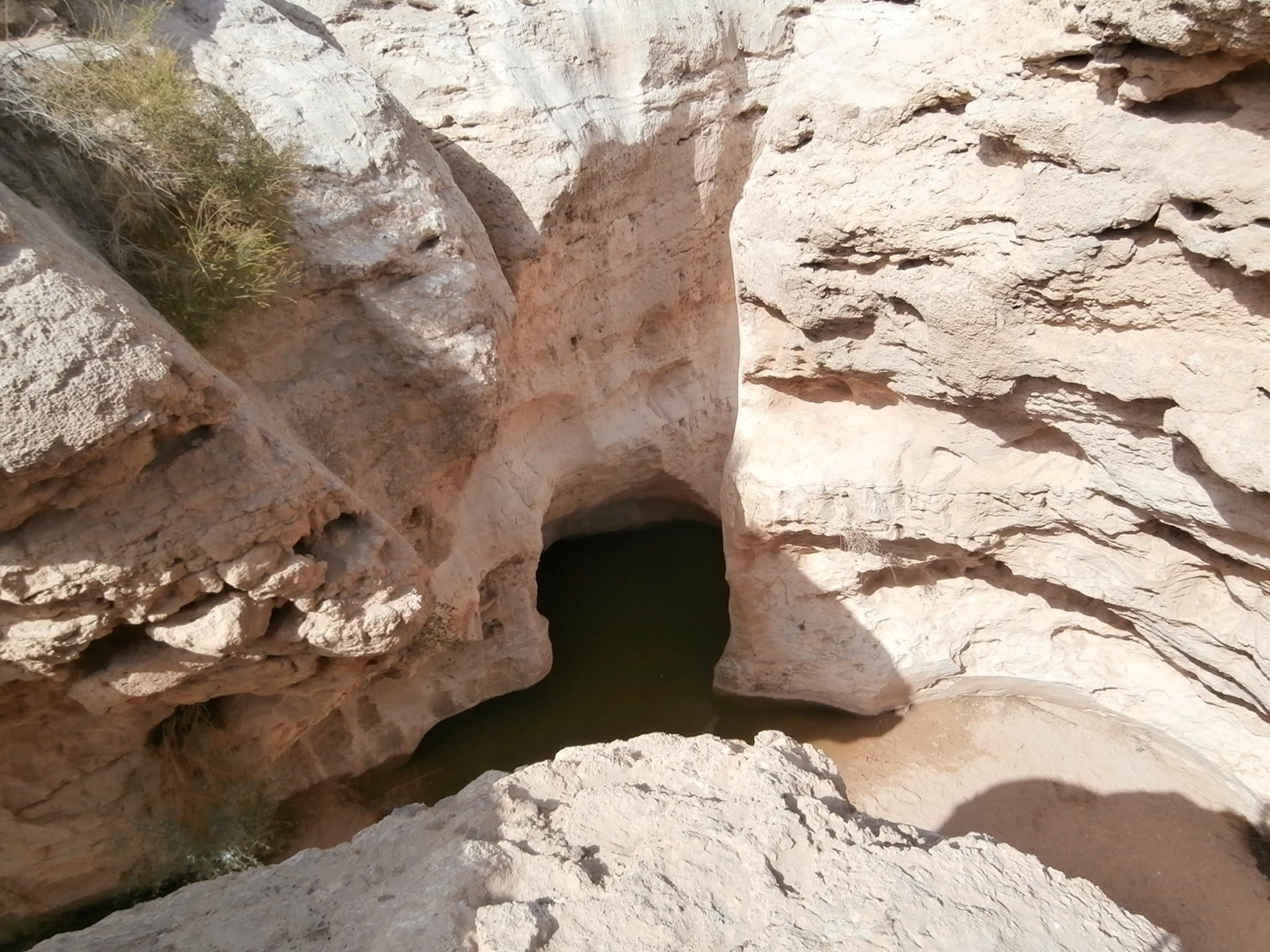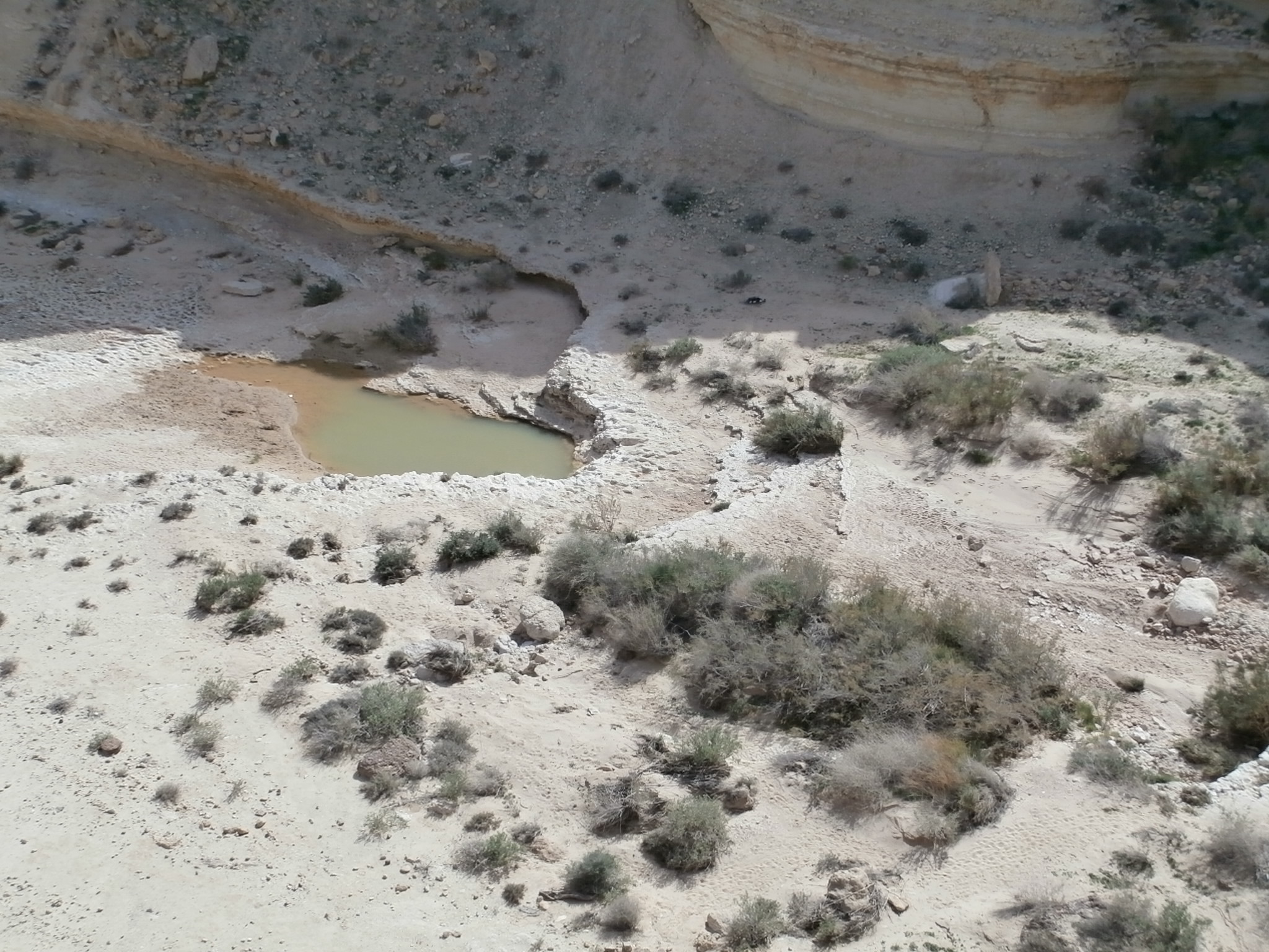 Воды там было не слишком много. Но в продолжении, в русле нахаль Хатира, я присмотрела себе внушительных размеров симпатичный гэв. Я буду не я, если в нем не искупаюсь! Подойти к гэву оказалось делом несложным. Надо было просто спуститься по размеченной тропе и внизу отклониться вправо.