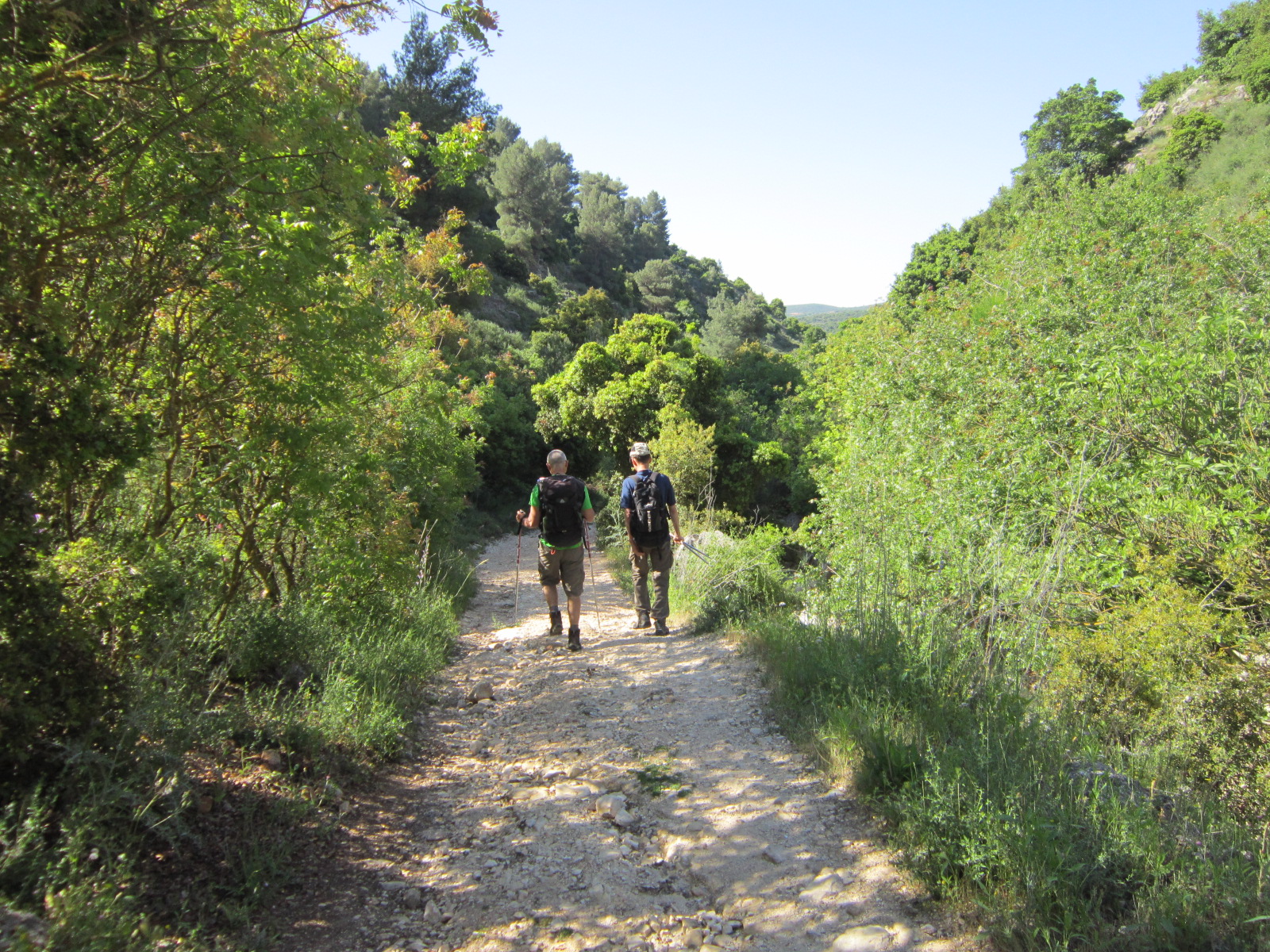 Как и предвиделось, вскоре мы их нагнали. Как только пришлось переходить русло по камням, они и «заткнулись». А мы-то с палками раз-два и оставили их позади.