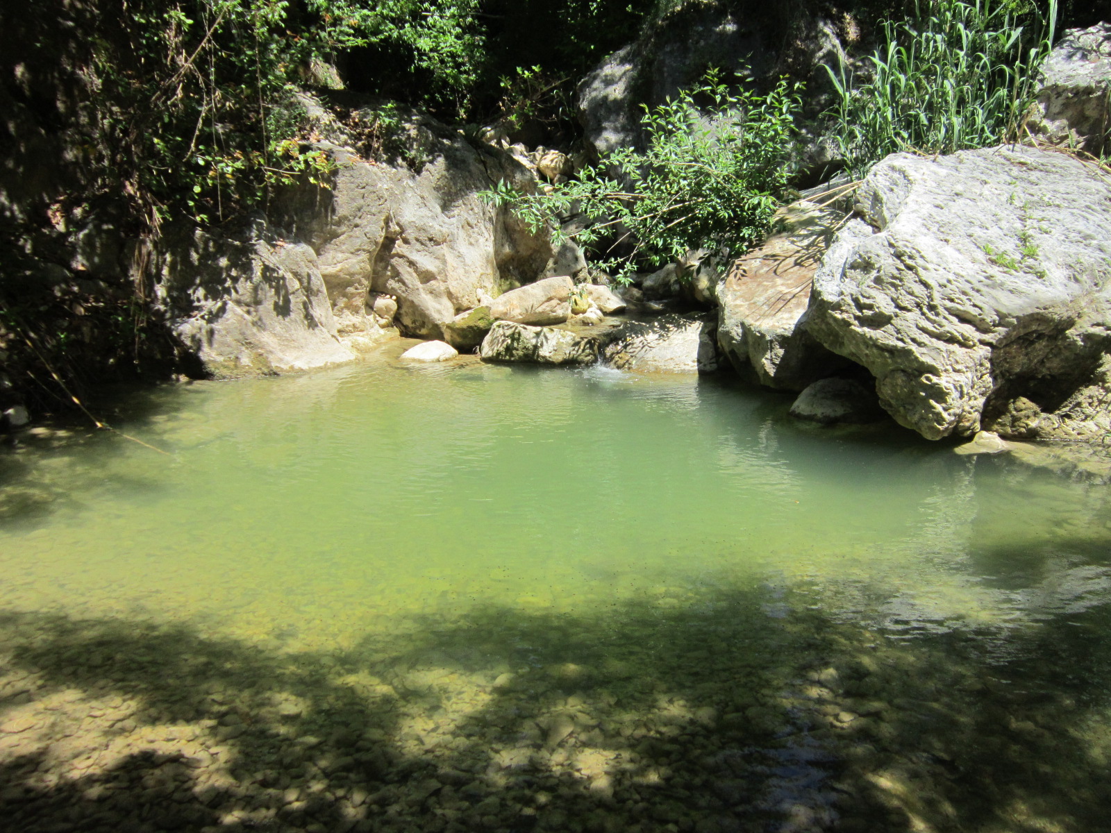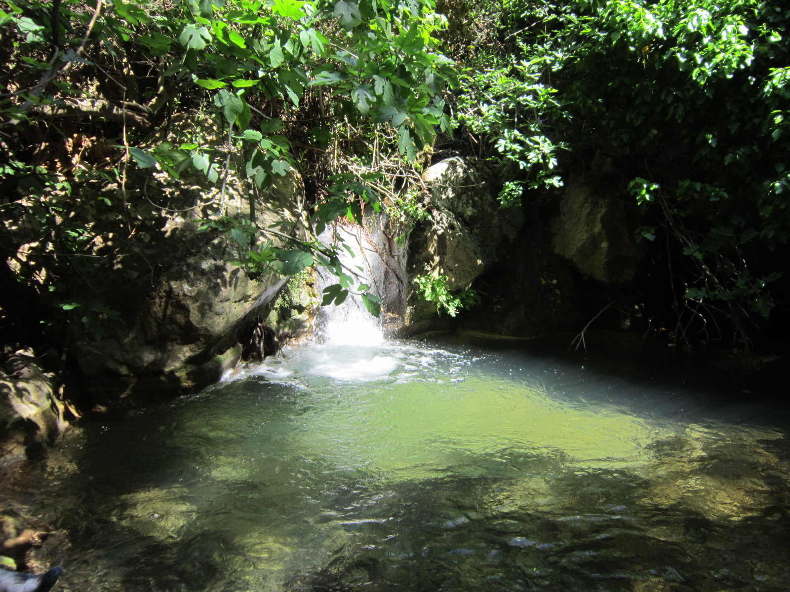 Миновав развилку, где тропа уходила наверх ко входу в платную шмуру, мы увидели прекрасный уединенный уголок с водопадом и приличным бассейном под ним. День обещал быть очень жарким, поэтому, невзирая на то, что мы еще не «запарились», решено было спуститься к водопаду и искупаться «впрок»