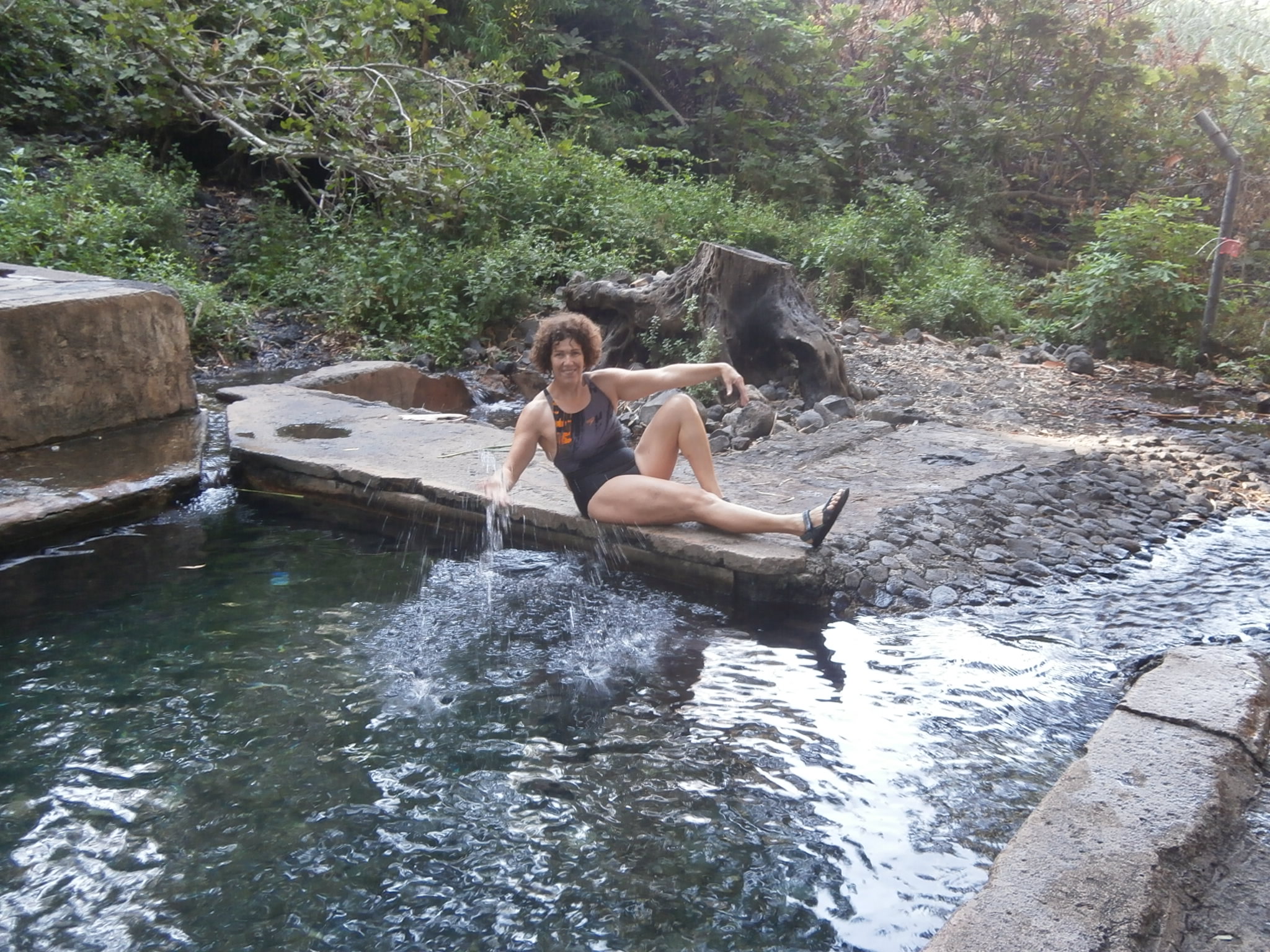 Здесь также бывает много людей. Но сейчас только 10 утра, а для Израиля это рано. Поэтому у источника мы, наш парнишка-тремпист и маленькая приятная компания молодежи, которая ловит кайф в тени деревьев, потягивая наргиллу. Но не прошло и 10-ти минут, как прибыло большое семейство с детьми и бабушками, и идиллия была нарушена. И что интересно, они сразу извинились и предупредили, что сейчас будет шумно. Народ стал прыгать в воду со стенок бассейна, но мы не решились последовать их примеру…