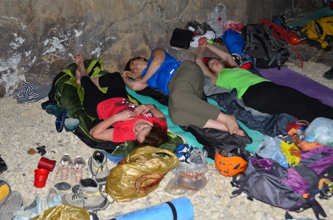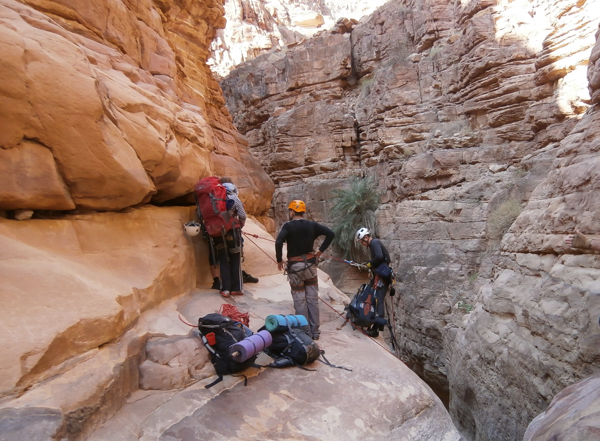 Надо заметить, что все станции для спусков в вади Ассаль делались на естественных опорах (каньон не пробит). И все станции были сделаны надежно и профессионально благодаря нашим специалистам —  Диме, Олегу и Андрею.
