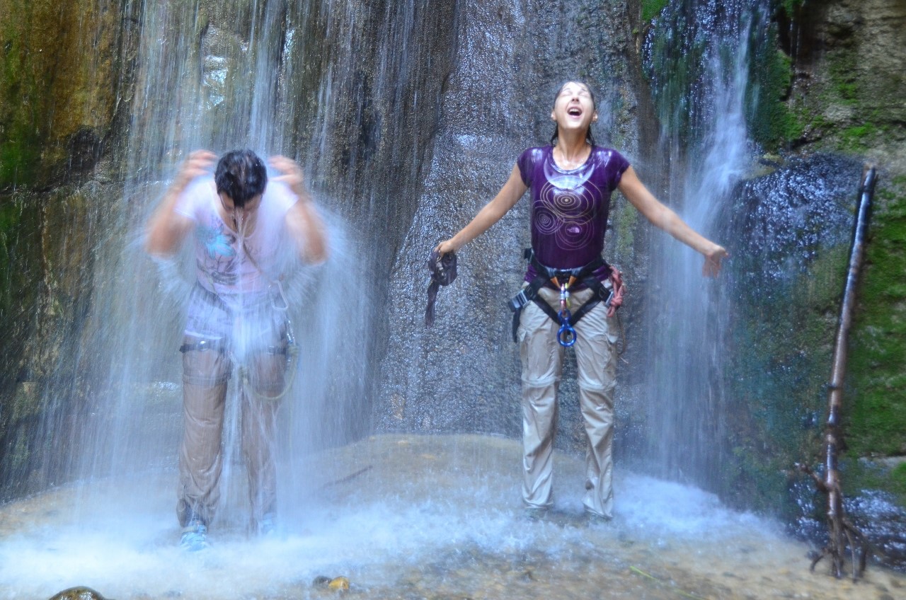 Второе место было самое красивое и развлекательное во всём каньоне. Но это чисто мое мнение. Потрясающе красиво было и наверху, где начинался спуск, и внизу, где струился водопад. Все мы сполна порезвились под его потоками, «оторвались» и расслабились. И это был настоящий праздник для души!