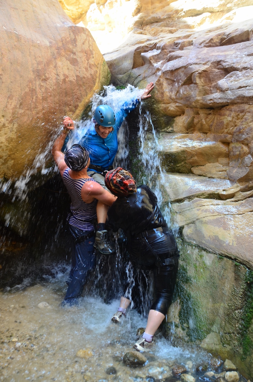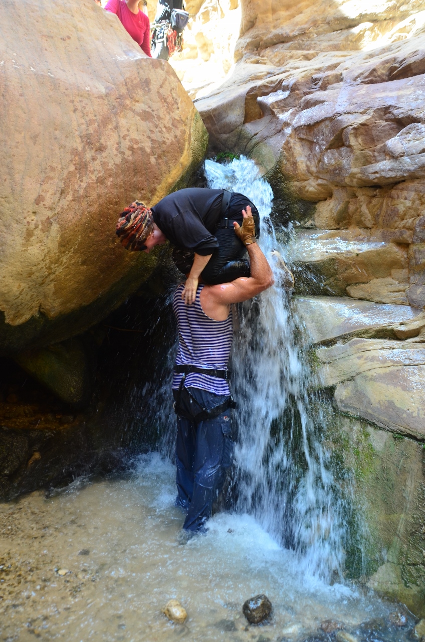 Эти сухие водопады-отвесы всегда вызывают во мне внутренний трепет и восхищение грандиозностью природы, её силой и властью над человеком. Вот идем мы по вади, и всё просто великолепно! Мы не перестаём удивляться красоте скал, перебираемся через болдеры, прыгаем или сползаем с небольших ступенек. И вдруг — стоп! Водопад. Высота 20 метров. Всё. Дальше идти невозможно. Дальше —  снеплинг.