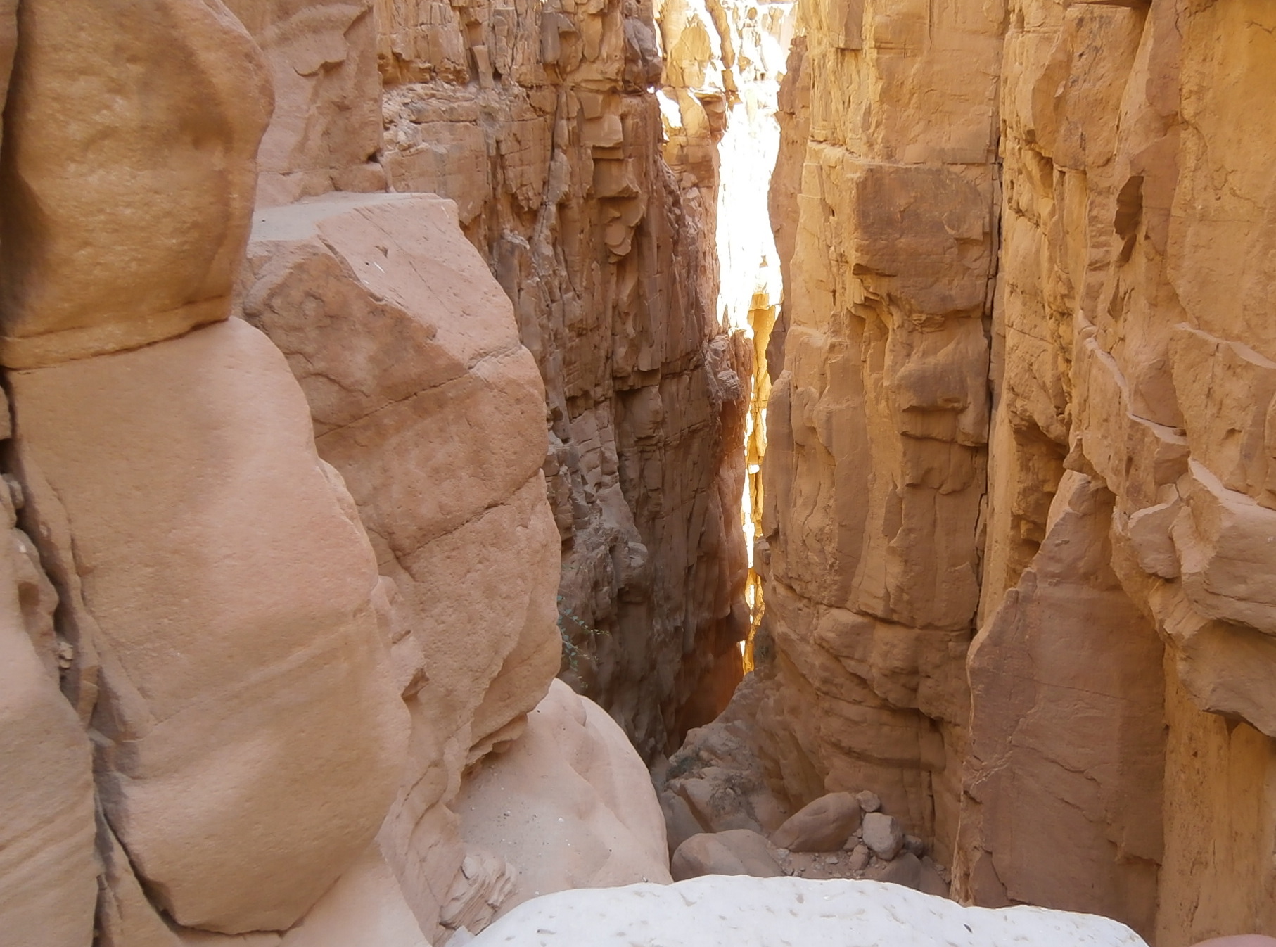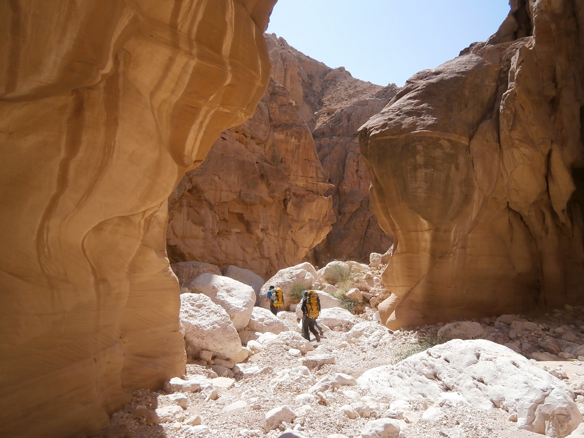 Вскоре спуски на верёвках закончились. Где-то в 12:30 мы сняли обвязки и пошли дальше. Большинство из нас были в вади Ассаль впервые и не знали, сколько предстоит пройти до выхода из каньона. А путь оказался очень длинным! Было ощущение, что вади никогда не кончится, и мы останемся здесь навечно. Я ничего не имела бы против, если бы не нормы общества, предписывающие нам выйти из каньона в 16:00 к ждущему нас автобусу.
