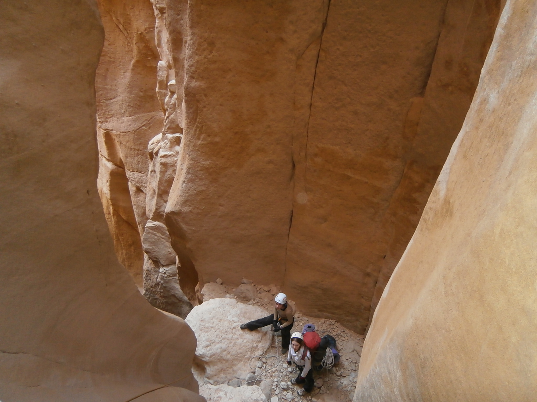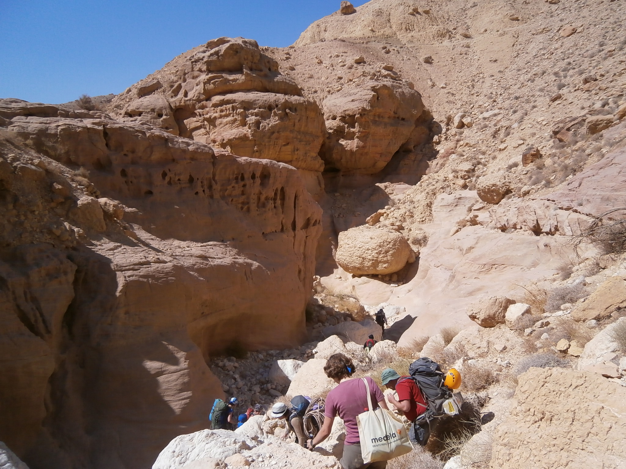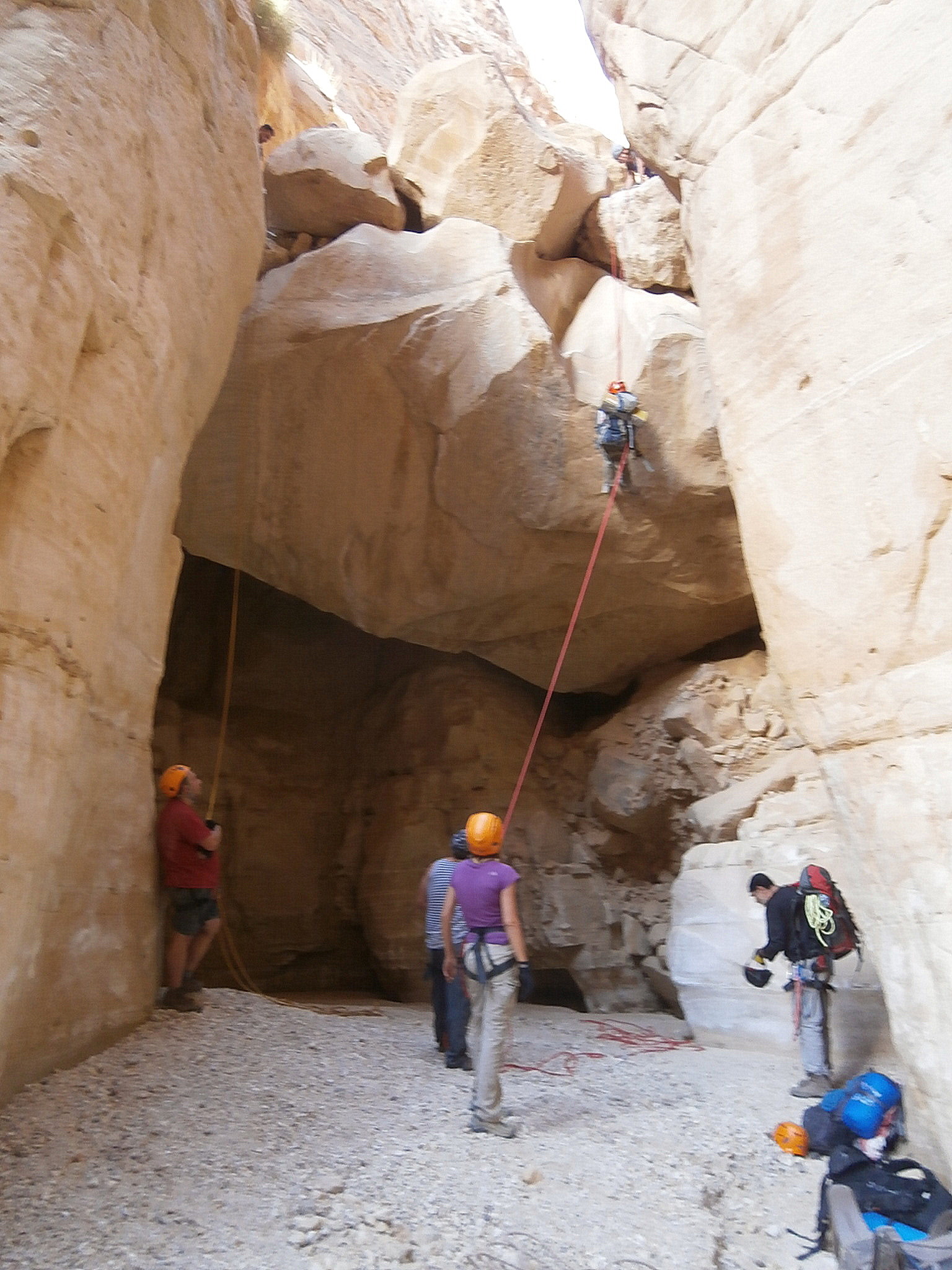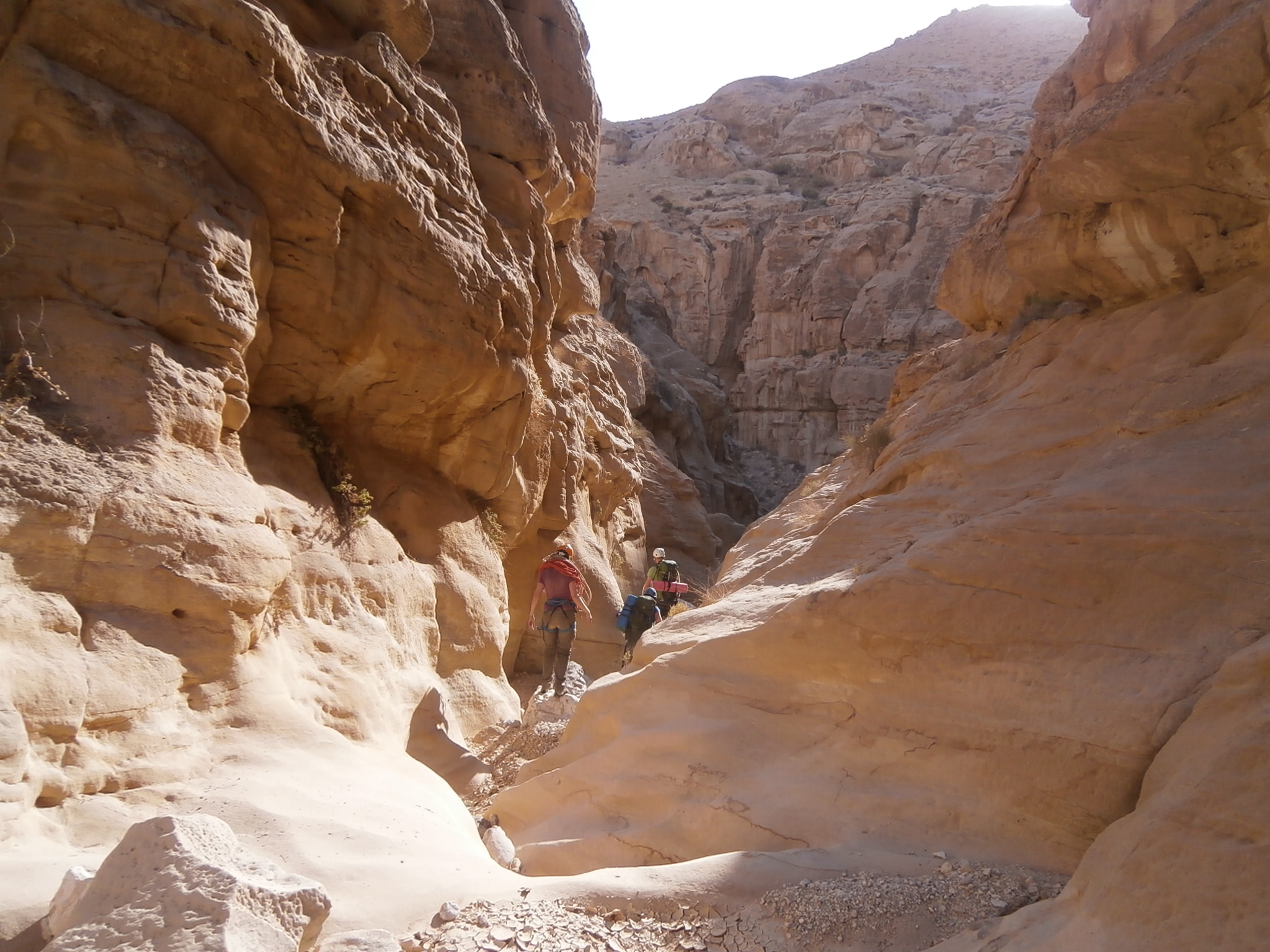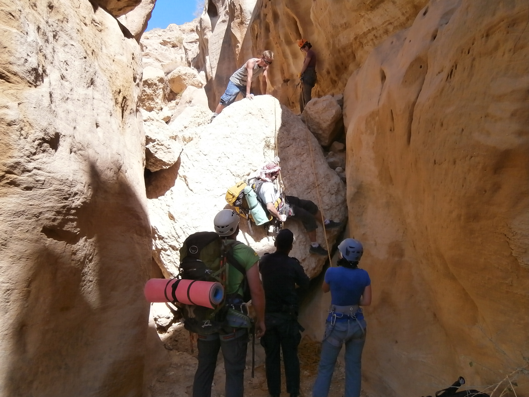 Сначала мы шли по вади Айма. Вскоре начались спуски на отвесах. Их было немало. Отвесы невысокие и все сухие.