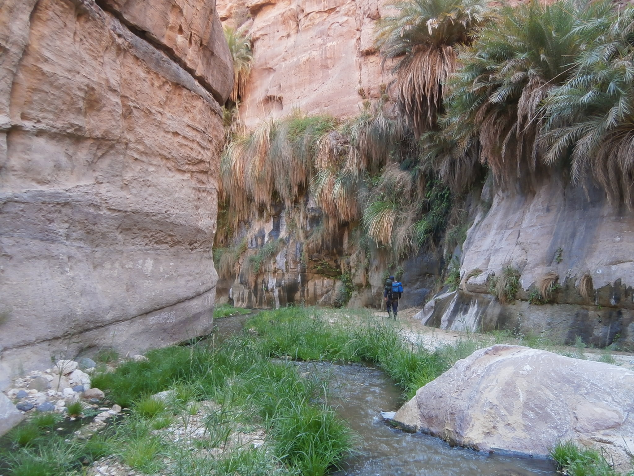 Надо заметить, что в эти ранние утренние часы наш иорданский сопровождающий пограничник-охранник Халед был полон сил. Он бодро шагал по каньону и нёс за плечами рюкзак Стаса.
