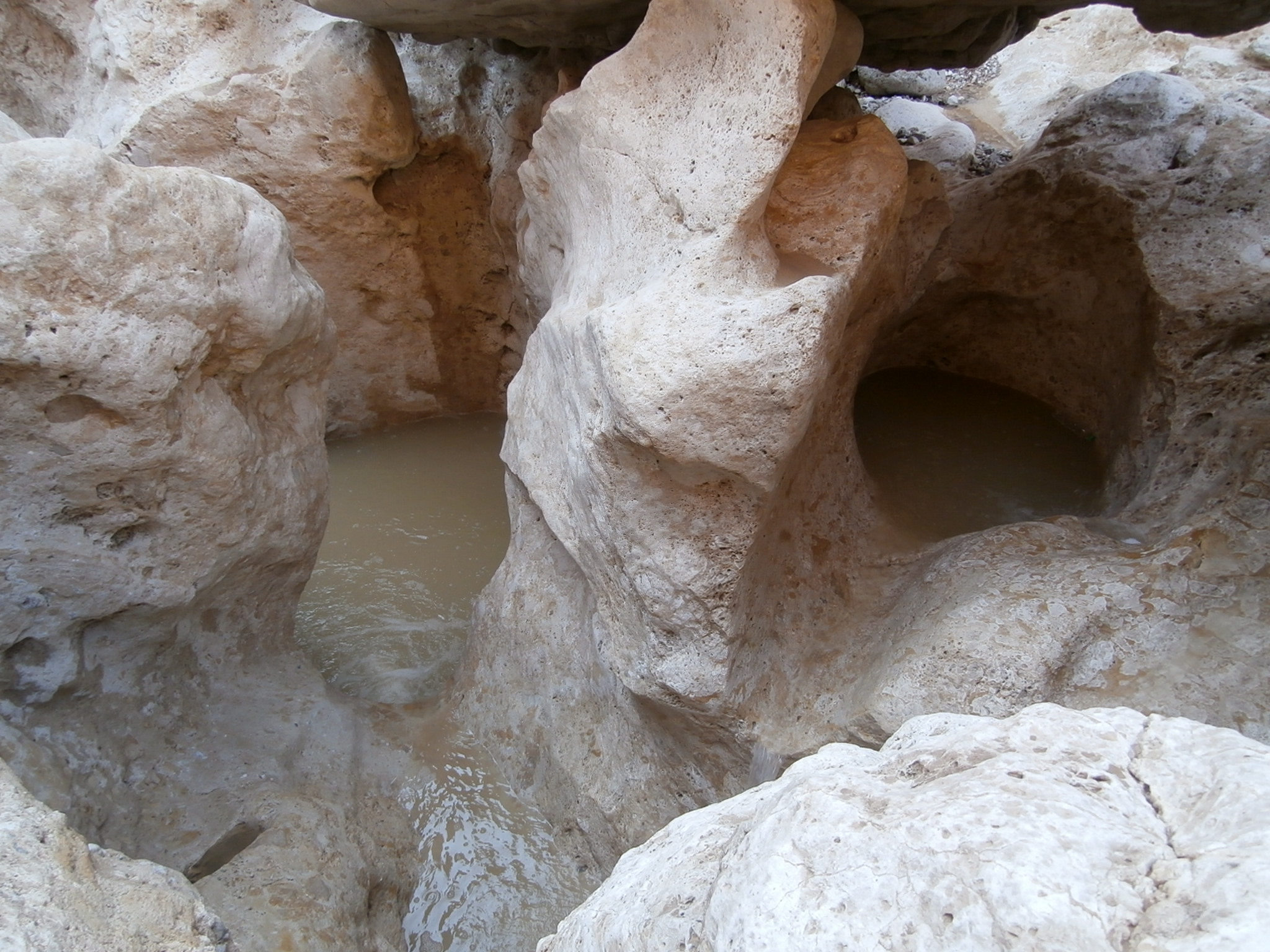 Нахаль Цеелим после недели бурь, дождей и ливней преобразился до неузнаваемости! Все еще течет и журчит вода, которая струится по многочисленным маленьким водопадам и наполняет гевим. В большом водопаде под биркат Цфира тоже есть небольшой поток. Когда находишься у его подножия, шум ниспадающей воды ласкает слух так, что не хочется оттуда уходить. В гевим свежая чистая вода, сверкающая на солнце, как будто там рассыпали огромные изумруды. Идешь и поражешься всем этим немыслимым краскам, формам и очертаниям, а за каждым изгибом ручья открывается все новый и новый, потрясающий вид, и каждую минуту хочется восклицать: ё-ё-ё, какая красота! Продвижение по маршруту шло очень медленно. Мимо такого великолепия жалко было проходить быстро. Хотелось остановиться и смотреть, смотреть, смотреть…И даже «взять с собой».