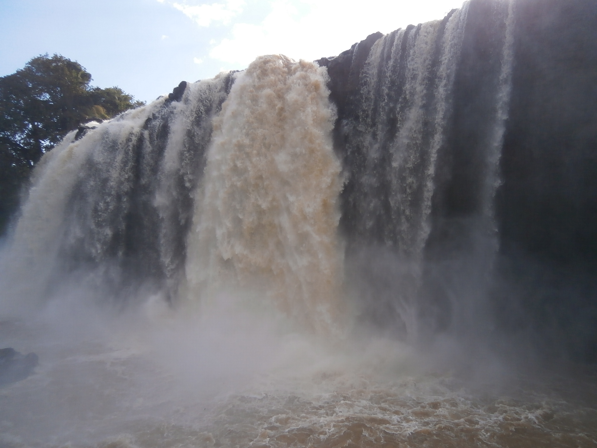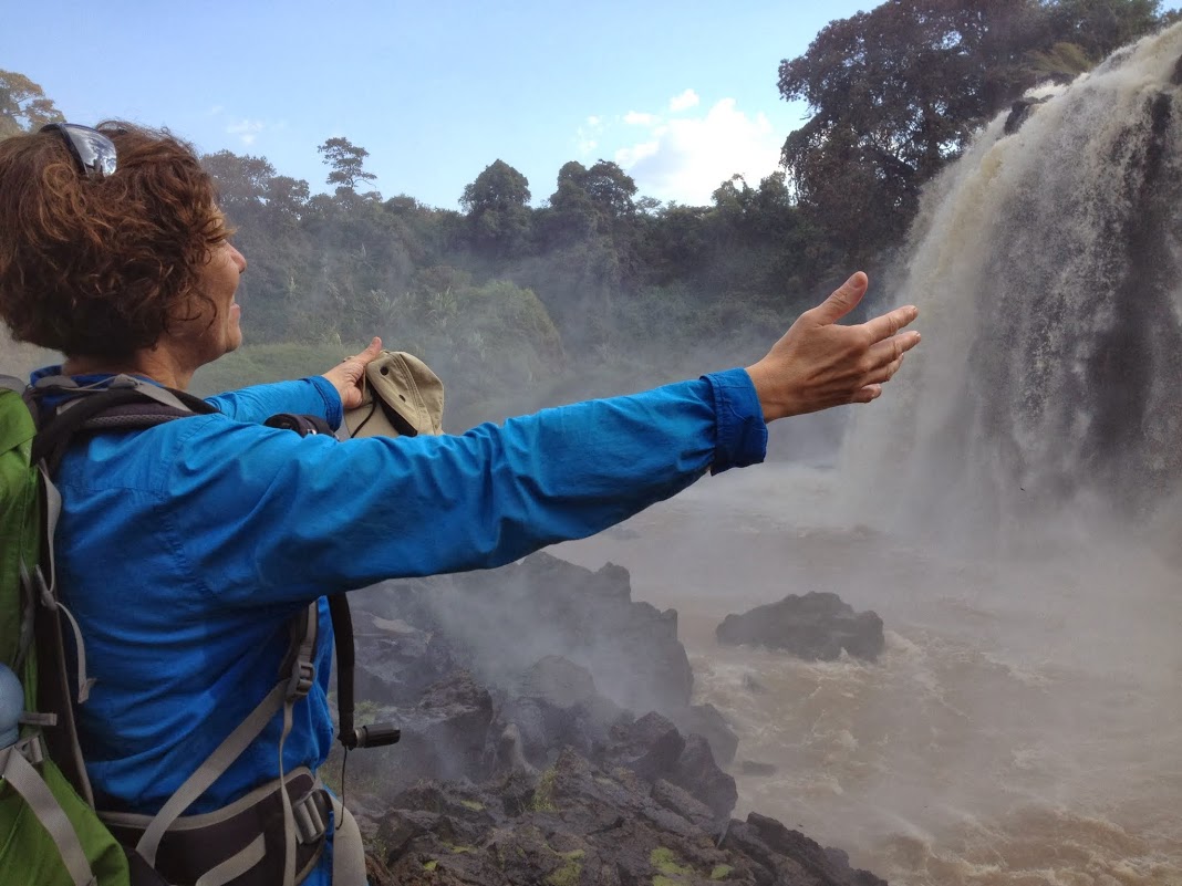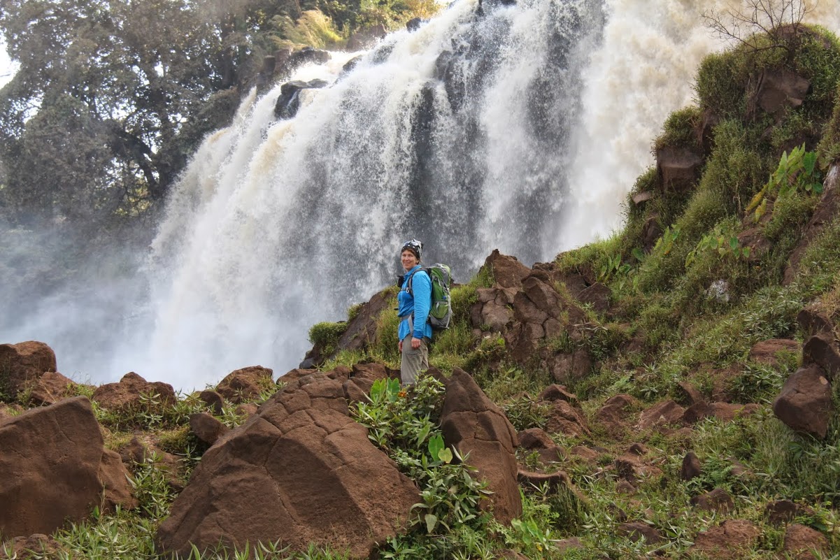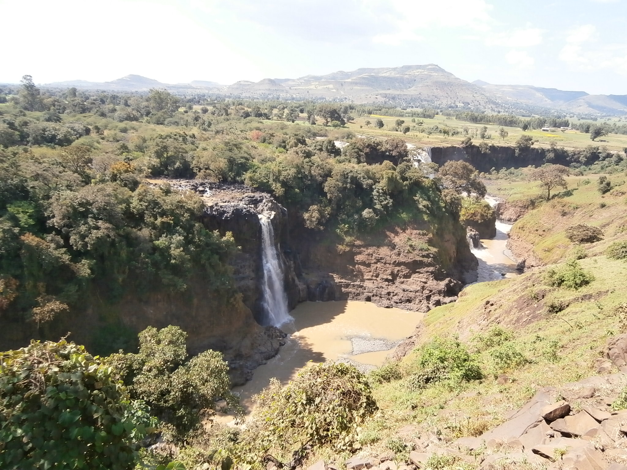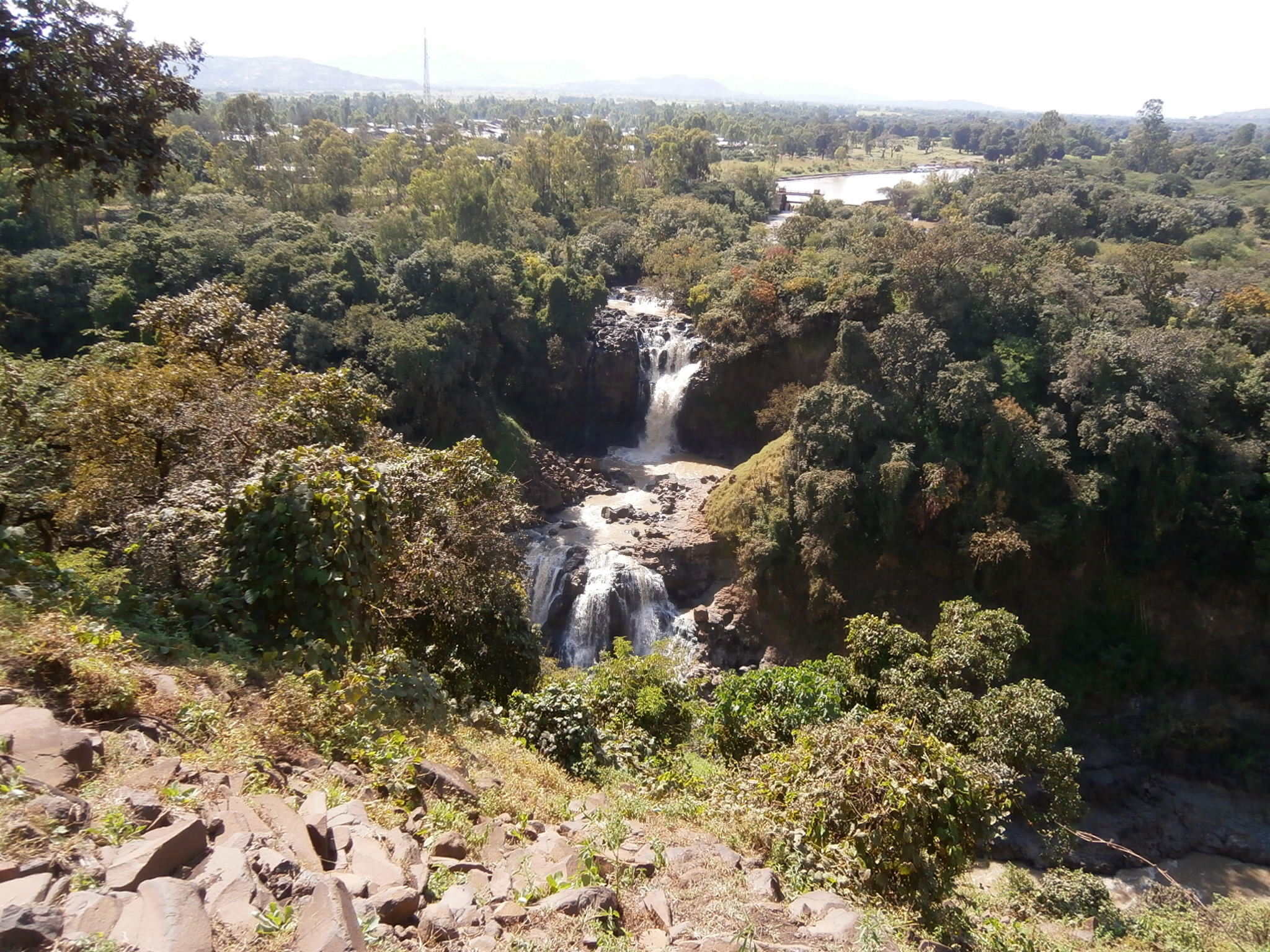 В 11:30 прогулка на катере закончилась. На берегу нас уже ждал Такли с минибусом, и мы сразу же поехали на водопады Голубого Нила. Эти водопады вторые по величине в Африке после водопадов Виктория и являются достопримечательностью номер один в Эфиопии. Однако этот факт не мешает тому, что дорога, ведущая туда  не заасфальтирована. 30 километров приходится трястись по просёлочной дороге. Вокруг — похожая на вчерашнюю картина, нескончаемые ряды местных жителей. И опять глаза широко открываются от удивления: как они так живут?! И насколько их жизнь не похожа на нашу… Опять дети, бегущие в/из школу (ы) в разноцветных нарядах-формах с книжками и тетрадками под мышкой. Стирка и помывка в  ручьях  и речках: