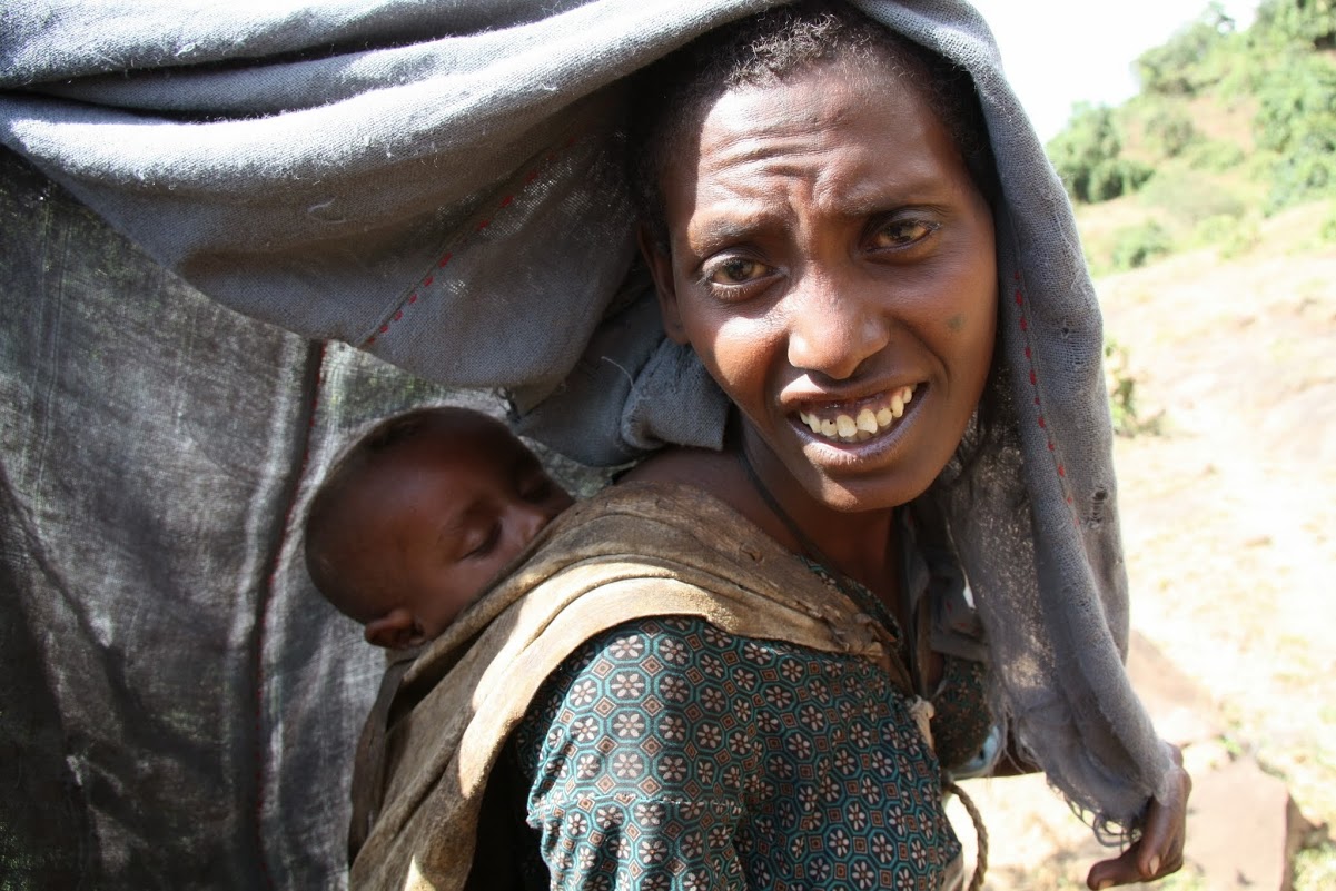 Фаня дала 10 бырр женщине с ребеночком, так она нас не оставила, пока не получила еще 30. Вот она, эта колоритная эфиопочка, а за спиной у нее мальчик — мамуш.