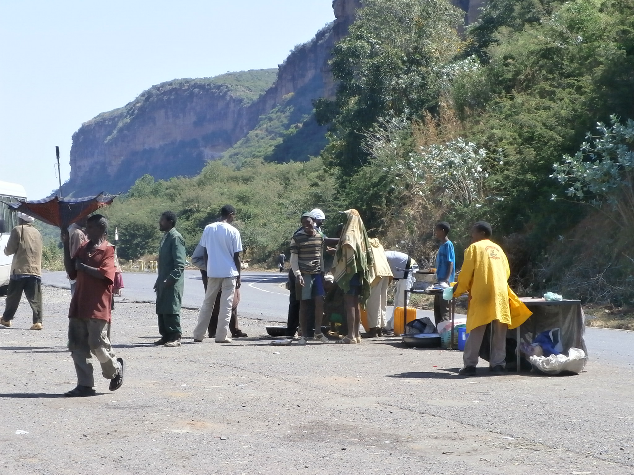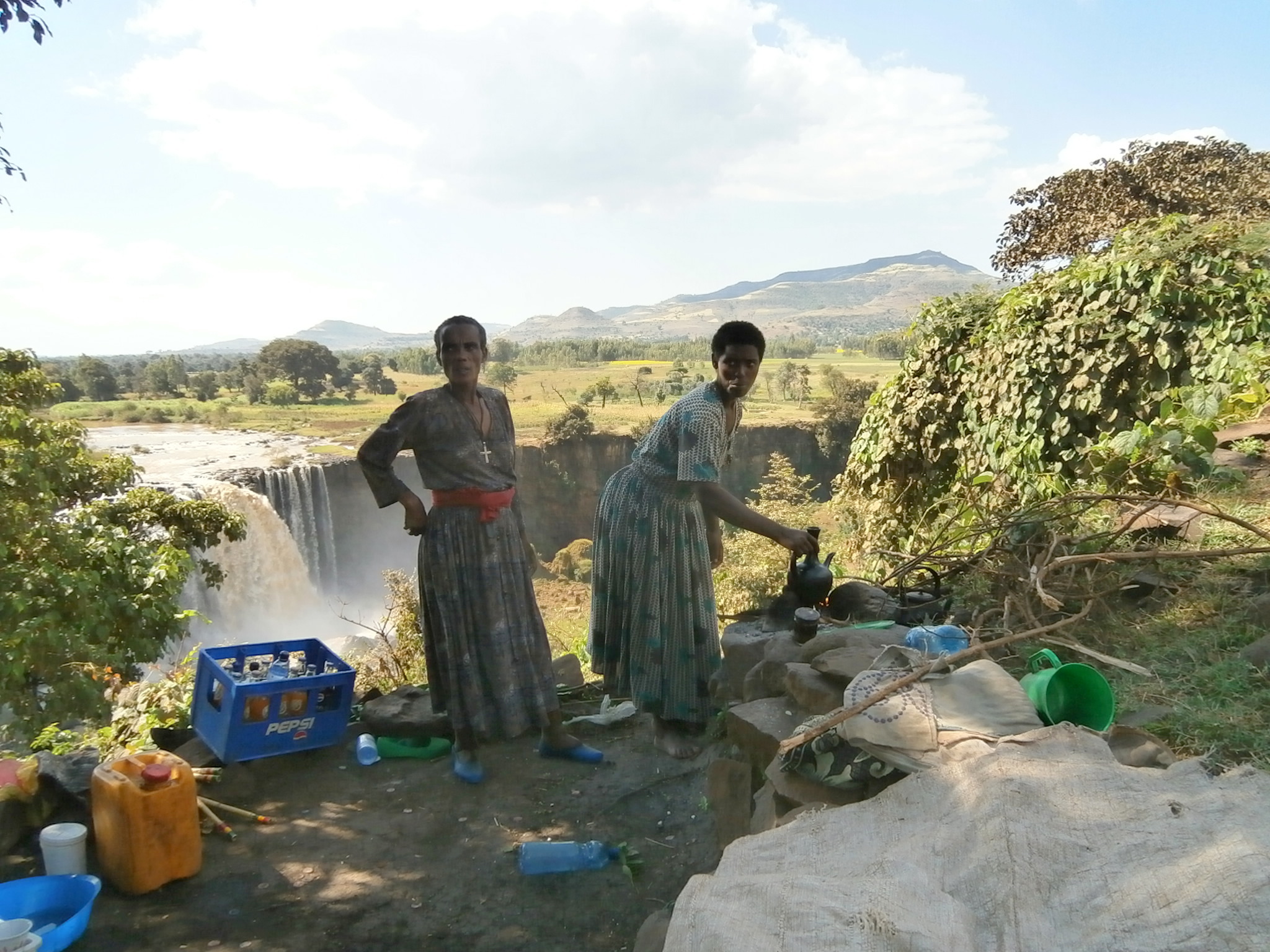 Недалеко от моста расположились местные жительницы, готовящие кофе. Здесь мы впервые попробовали кофе по-эфиопски, что было очень вовремя, поскольку бессонная ночь в самолете уже давала о себе знать.