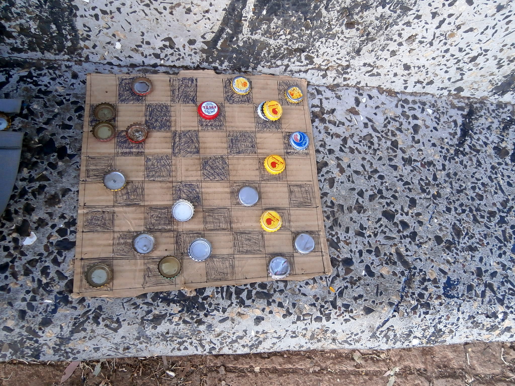 На берегу, прямо на скамейке — «клуб любителей шашек», и можно было сыграть партейку, используя оригинальный комплект:
