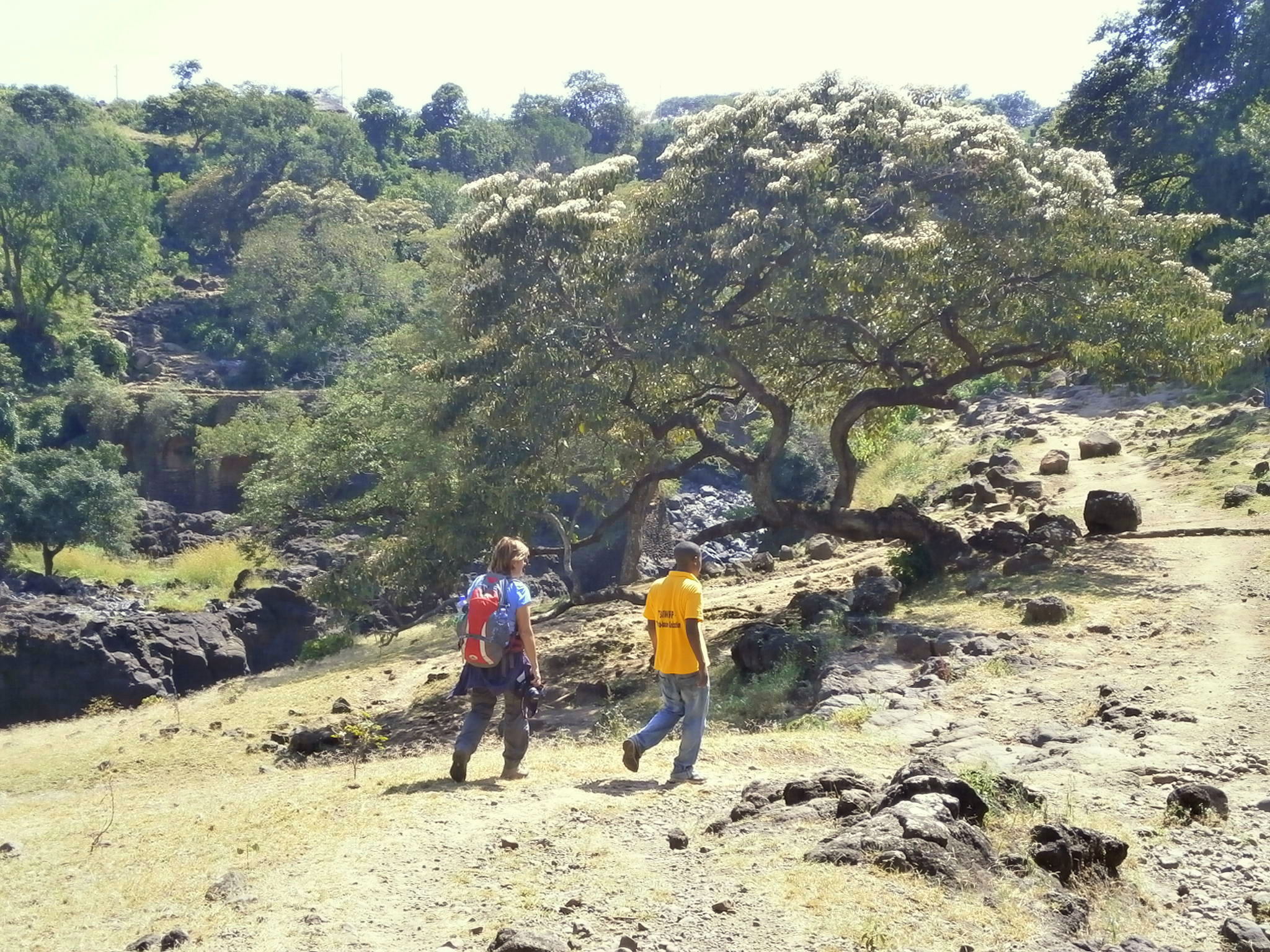 Подъехали к конторе  водопадов, заплатили по 30 бырр за вход и сразу же подверглись атаке-натиску местных гидов. Все они наперебой предлагали свои услуги, и каждый из них утверждал, что сами мы дорогу к водопадам не найдем. А мы очень хотели пойти сами без никакого гида. В конце концов один из них просто сел к нам в минибус и поехал. И таки пришлось нам согласиться и взять его в сопровождающие. Указателей там нет никаких. Понятно, что для местных быть гидом — это неплохая работа, и они не согласны ее терять. Нашли бы мы путь сами? Я уверена, что да, нашли бы, но  ушло бы немало времени, пока бы сорентировались на местности. Наш гид, кстати, оказался неглупым, веселым и компанейским парнем, и с ним было классно прогуляться.