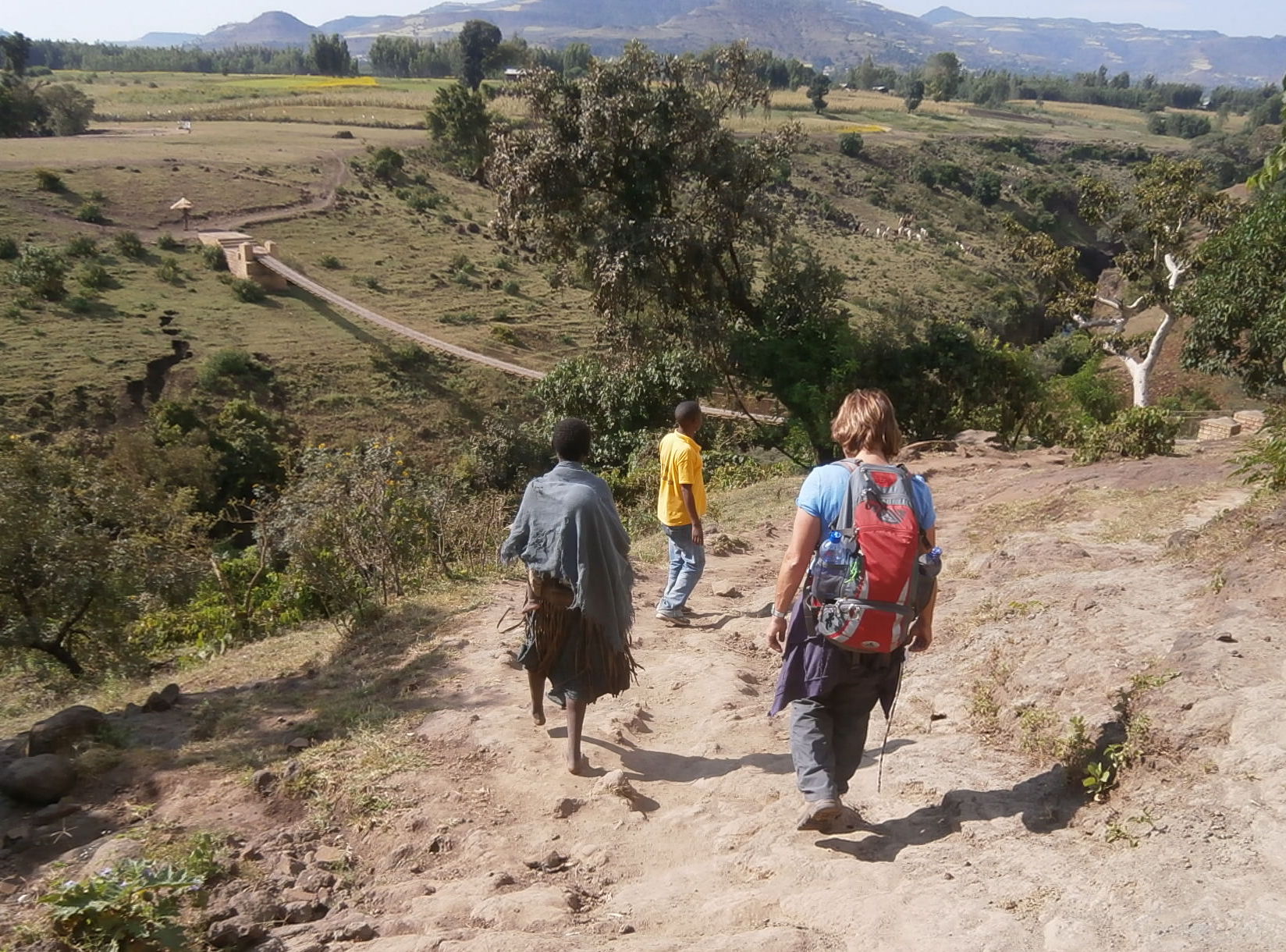 Впоследствии, на всем протяжении нашего путешествия по Эфиопии, местные гиды будут нас сопровождать, можно сказать, в добровольно-принудительном порядке. Разумеется, за плату. Так работает туристический бизнес в Эфиопии: отсутствие доступных карт и указателей в посещаемых туристами местах, но наличие местных гидов, которые всё тебе покажут и расскажут.