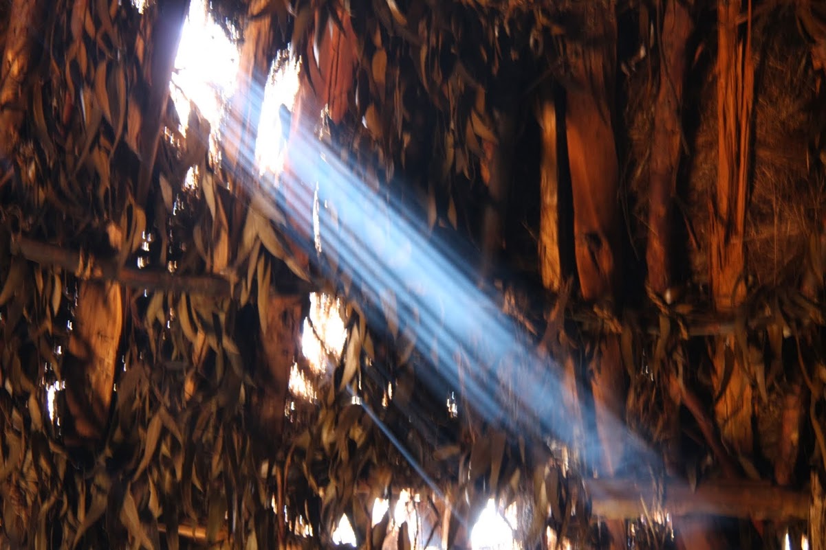 Дом их — это круглая постройка из камней и веток, довольно просторная. Крыша покрыта специально выделанной травой. Выглядит колоритно. Изнутри видны просветы между ветками. А дождь? А ветер? Климат ведь здесь не жаркий!