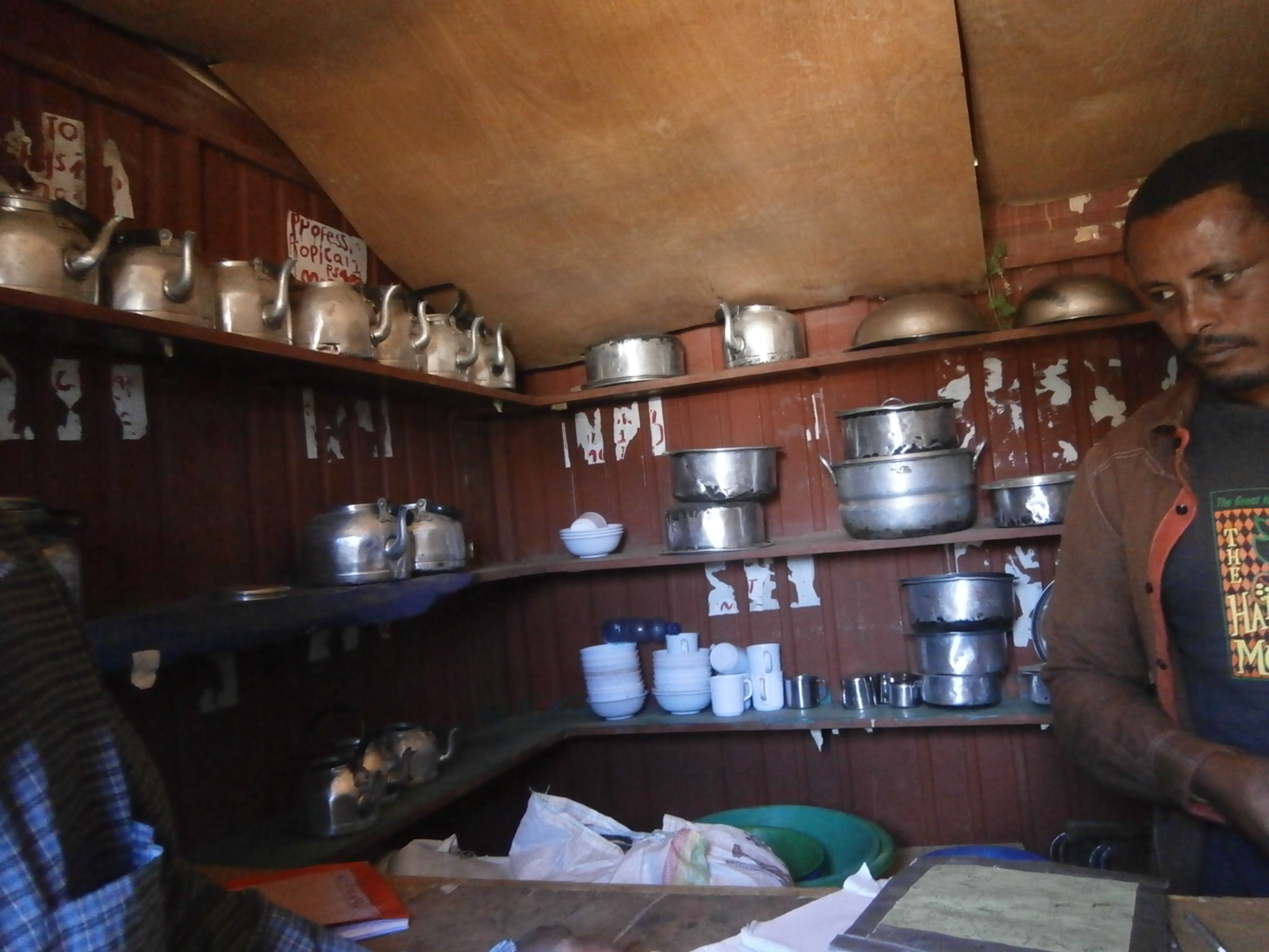 Прибыли в Гондар. Здесь мы должны были взять на прокат газию с баллоном, чтобы самостоятельно варить еду во время трека. Такли, наш шофер, с некоторым трудом нашел нужное заведение. По пути он подсадил «помощника» — прилично одетого жителя, как выяснилось, местного гида. Он подсказал, куда ехать и вместе с Фаней пошел в пункт проката. Через 10-15 минут они вернулись. Оказалось, что нам предлагают взять огромный газовый баллон, и стоит это удовольствие 1000 бырр. Дороговато… К тому же, его нужно будет возвращать и тащить на себе. Ведь минибуса с нами не будет, и мы пока не знаем, как будем добираться в Гондар после трека. Тем временем, как здесь водится, возле машины собрались любопытствующие и «сочувствующие». Они предложили Фане посмотреть, что можно взять взамен газии. Сказали, что это — тут, рядом, за углом. Фаня исчезла, и ее не было 45 минут, показавшихся мне вечностью… Вернулась она с новой, в упаковке, керосинкой, спичками, бутылкой керосина и мешочком риса.