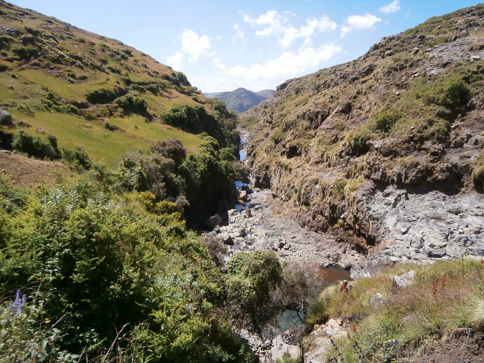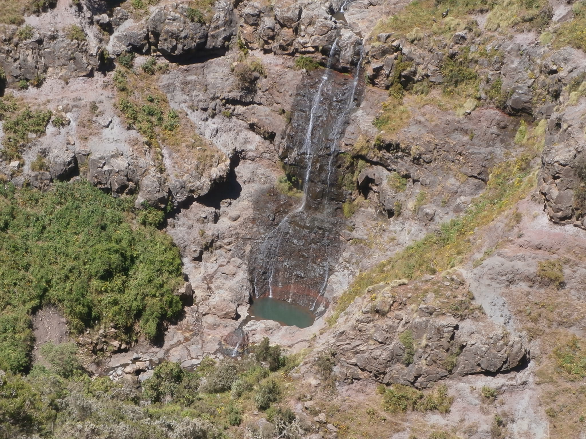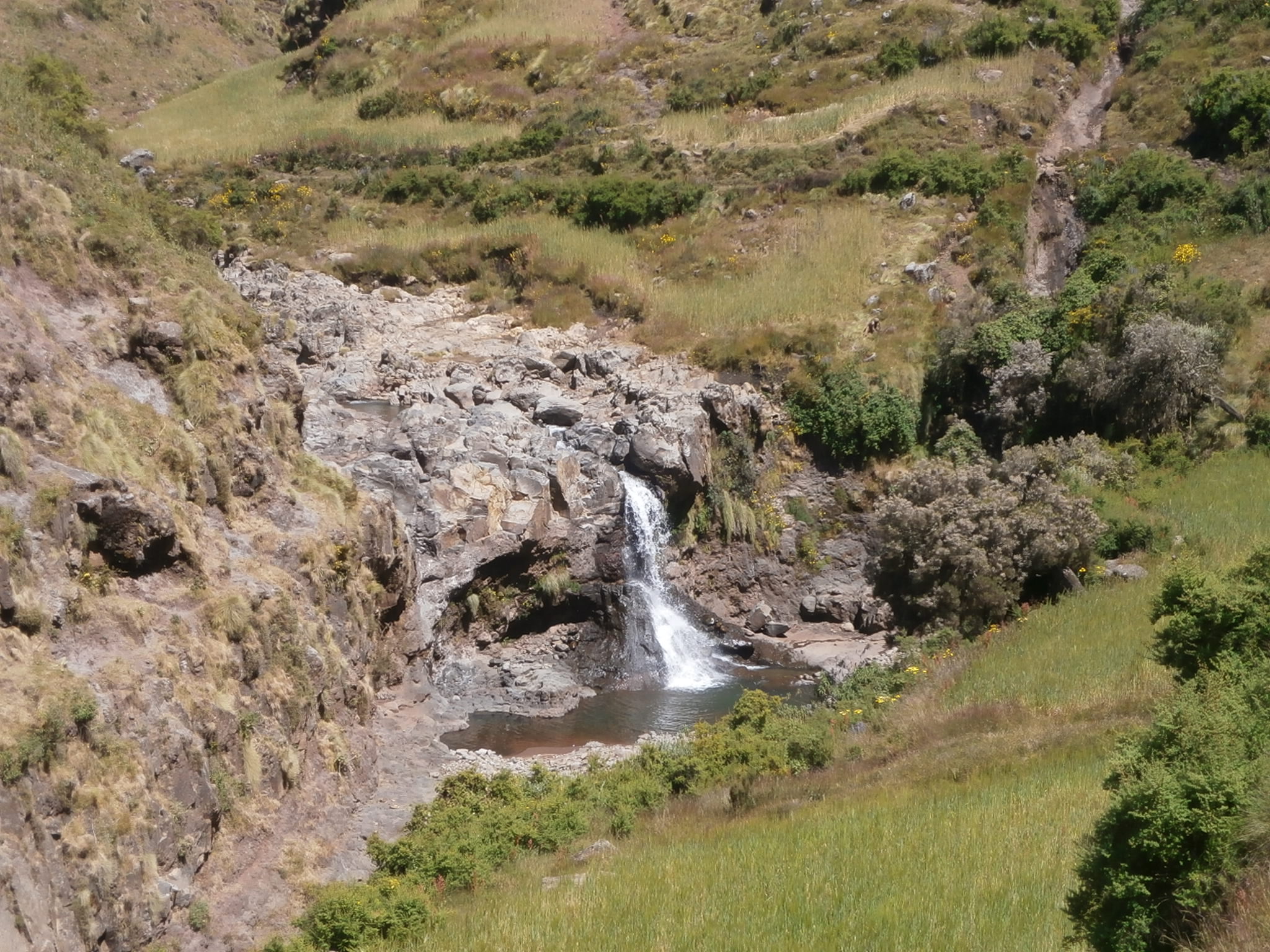 Мы шли по склону над глубоким ручьём, падающим далее по течению высоким водопадом, который мы только что видели. Сверху была видна текущая вода и невысокие водопады. С боковых склонов также стекали ручьи с водопадами. Картина завораживающая, не отвести глаз!