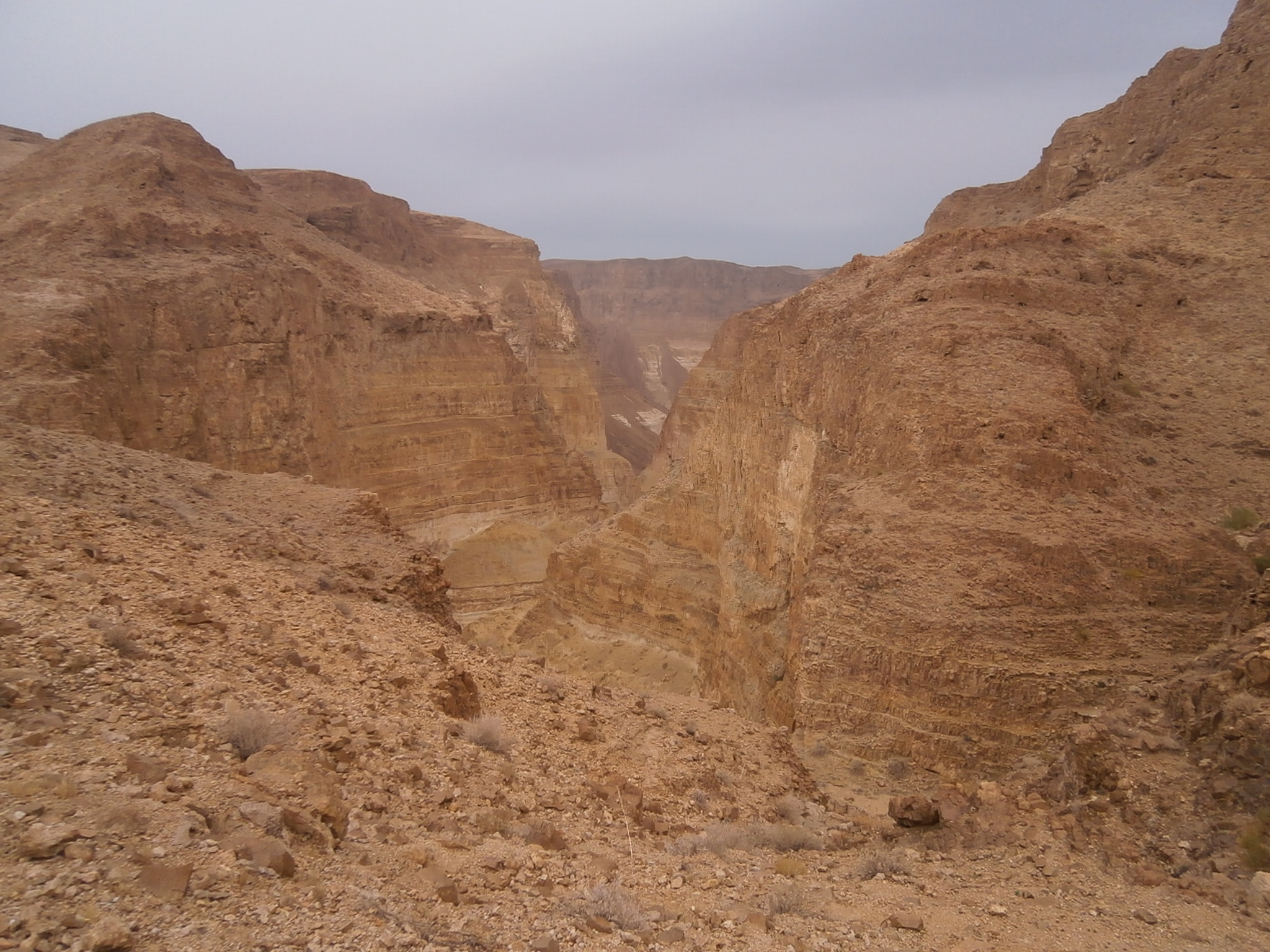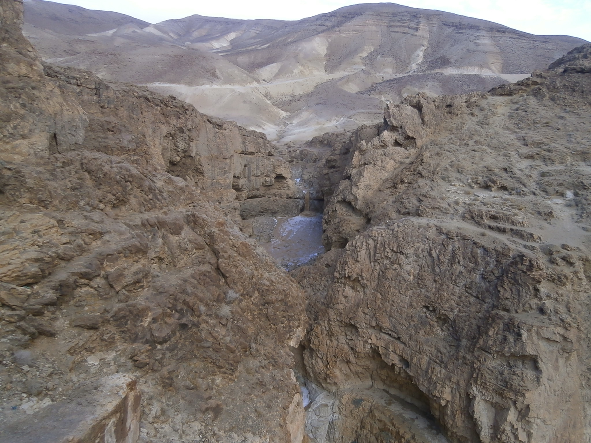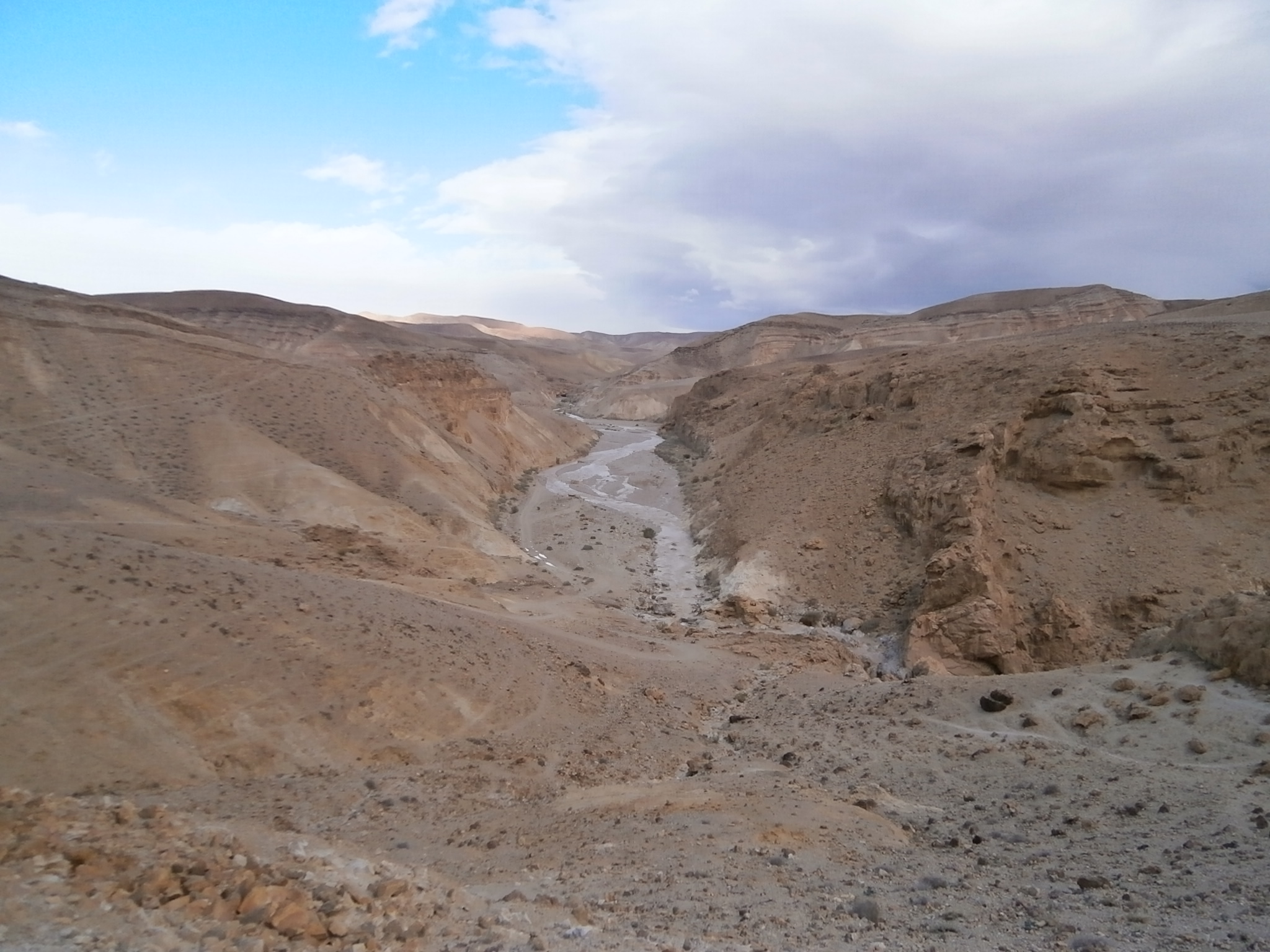 Вдали, внизу был виден нахаль Цеелим, Мертвое Море и шоссе номер 90, пустое, без машин, перекрытое уже несколько дней из-за шитфонот (ливней). Здесь стояла какая-то нереальная, ничем не нарушаемая тишина. Вся природа вокруг была пронизана покоем и умиротворением. Не слышно было ни людских голосов, ни шума машин…