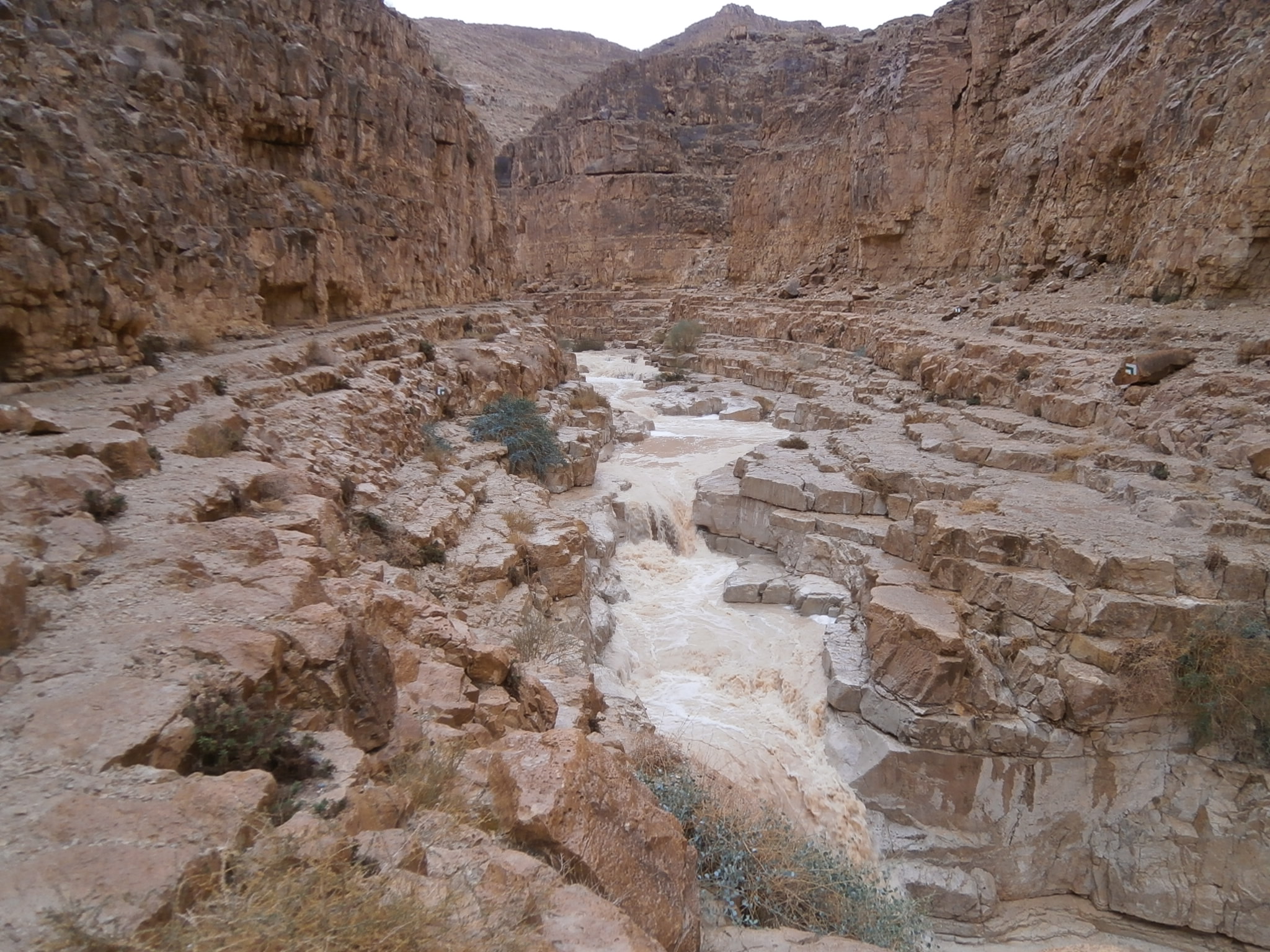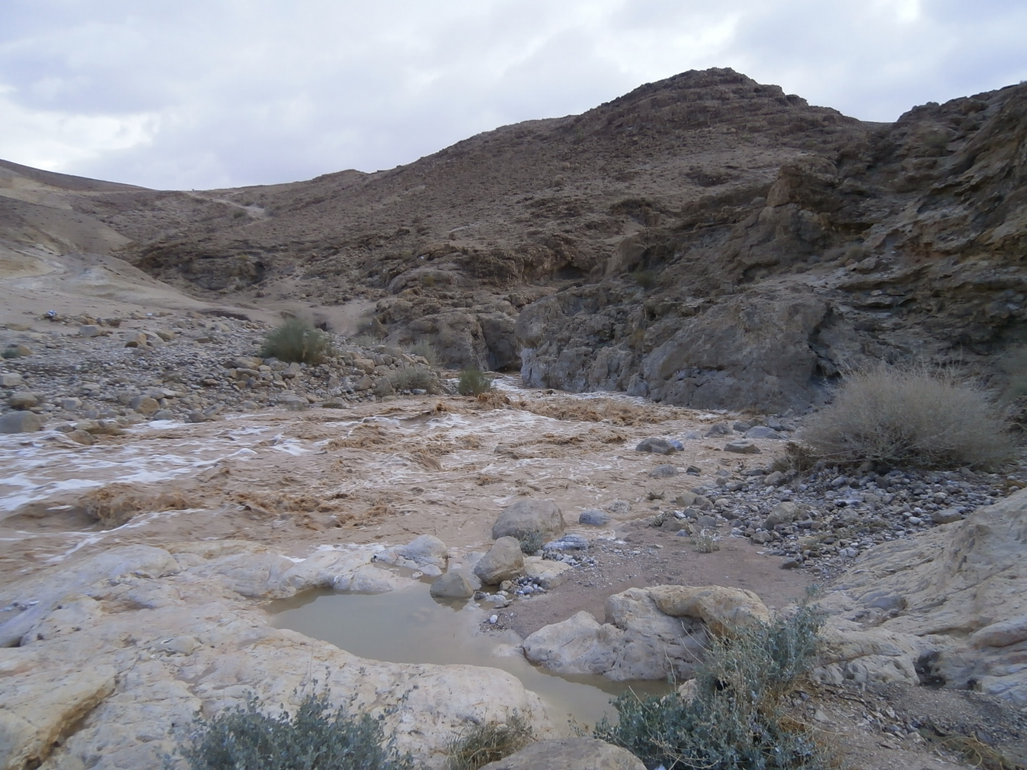 Когда такое случается, и вся наша страна в снегах и дождях, я всегда думаю: а как там в пустыне?! Ручьи, наверное, текут и водопады, наверное, шумят… Нынче лило, как из ведра, несколько дней подряд, и природа преобразилась. Даже недалеко от моего дома в Петах Тикве нахаль Мазур, обычно сухой, ожил и налился коричневой водой:
