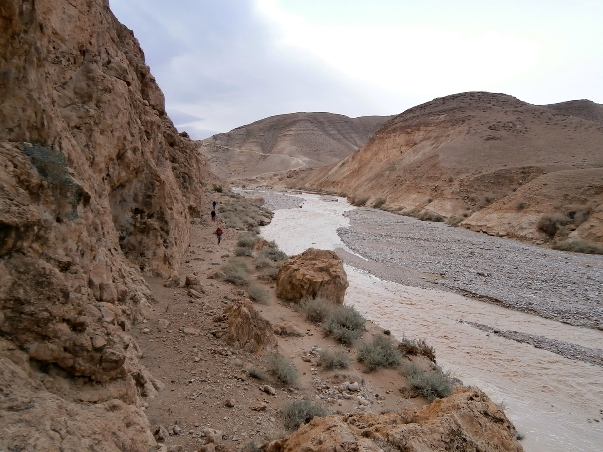На всякий случай мы с Сашей всё же пробежались по берегу, где это было возможно, надеясь увидеть место, подходящее для переправы. Но увы, поток в нахаль Цеелим был слишком сильным…