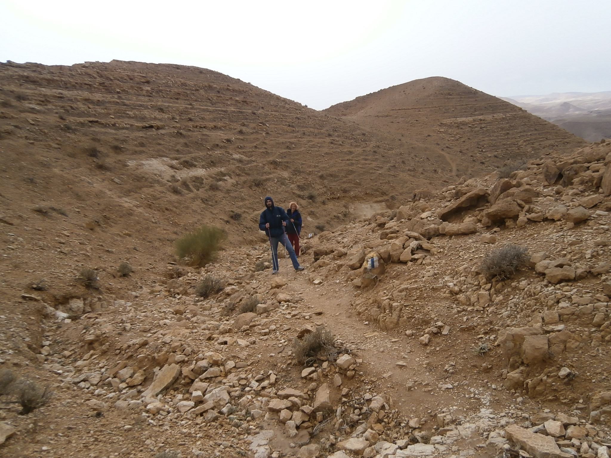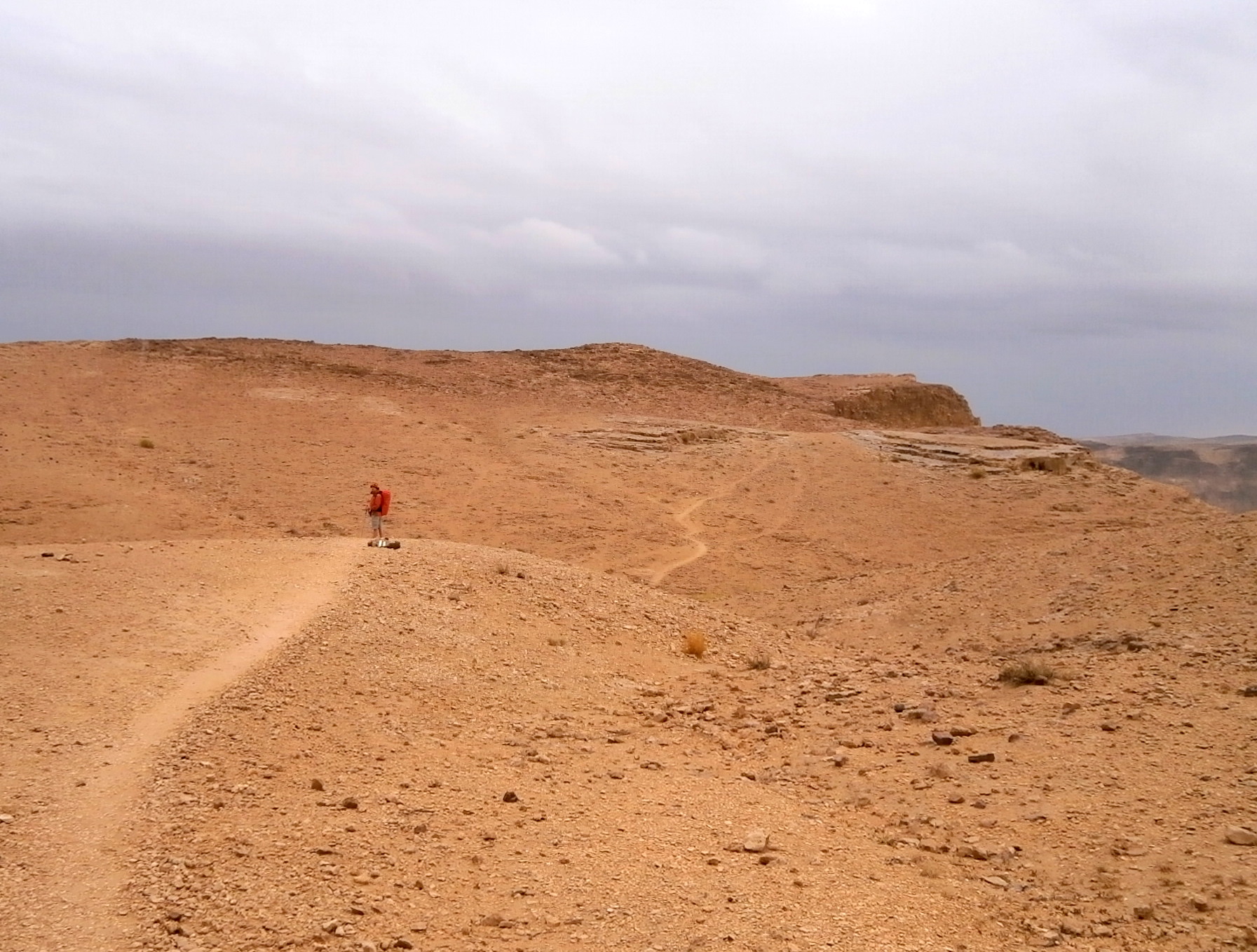 Затем очень, очень долго шли по зеленой тропе сквозь пустыню и ждали, когда же мы наконец дойдём до перекрёстка и повернем на тропу с синей разметкой, которая приведет нас к вади Цеелим, затем на красную и там уже будет недалеко до стоянки, где нас ожидает машина…