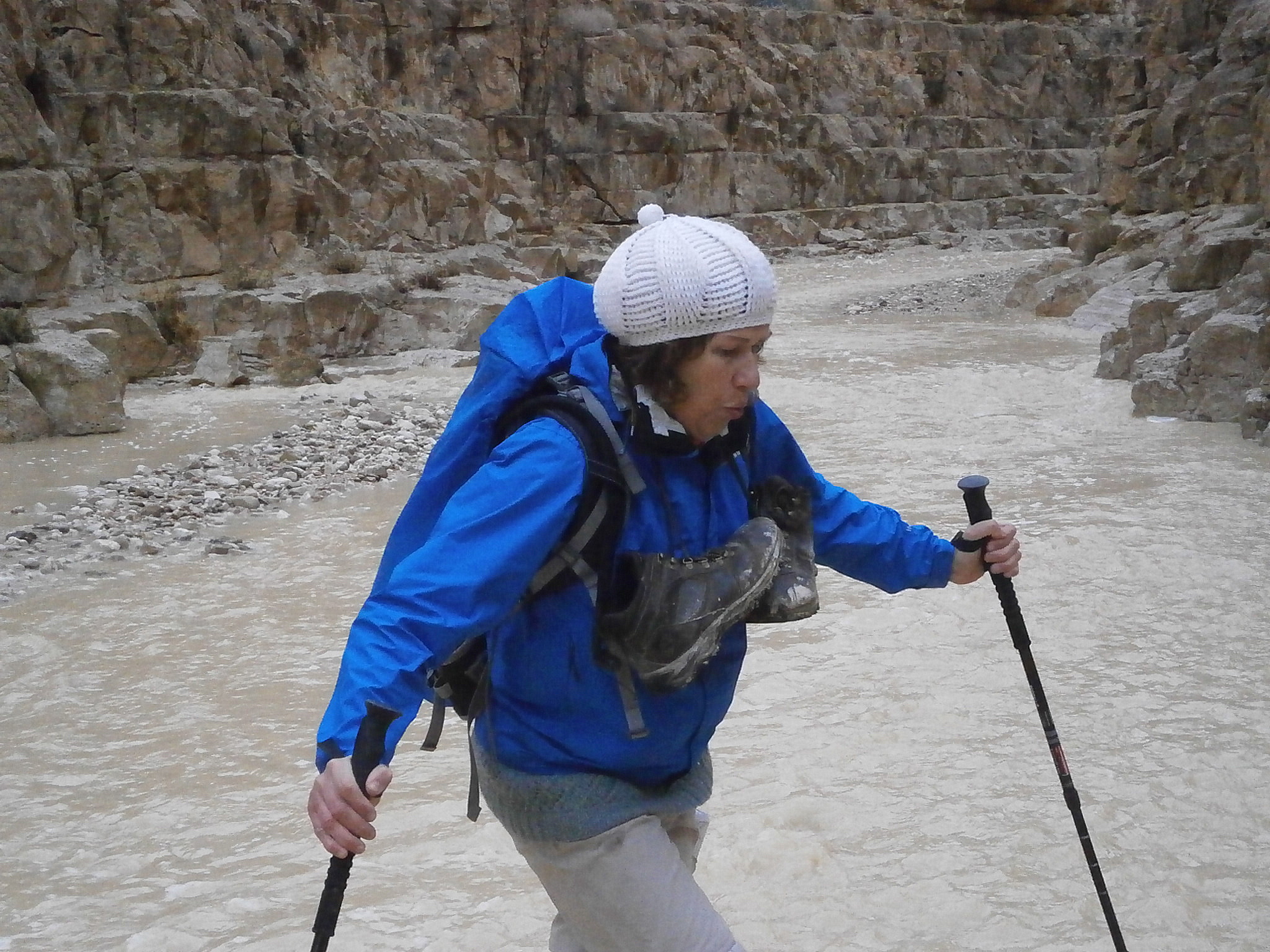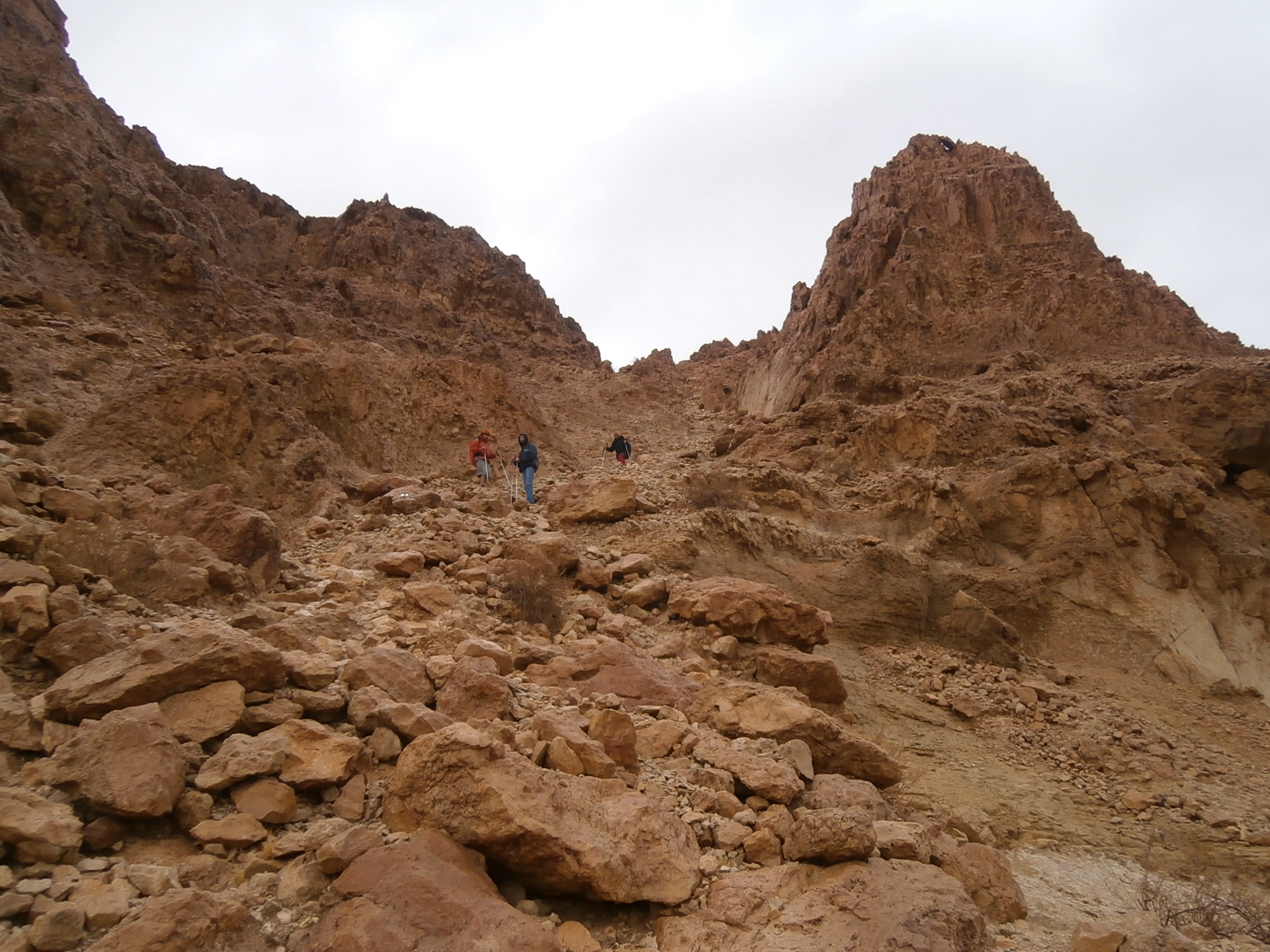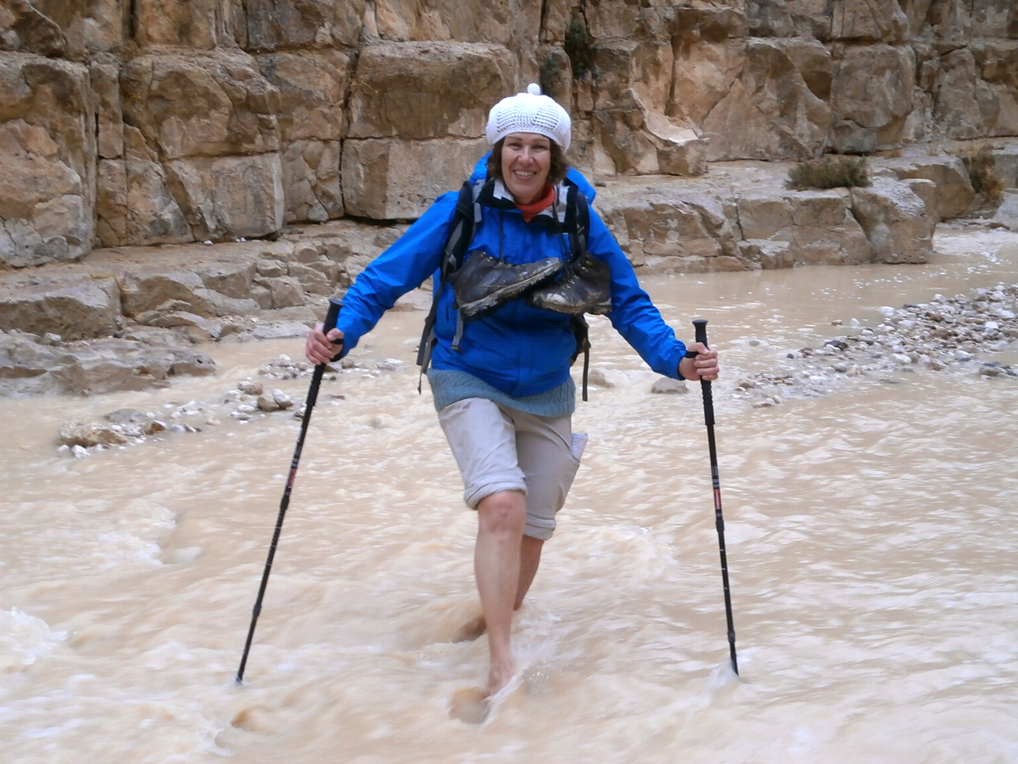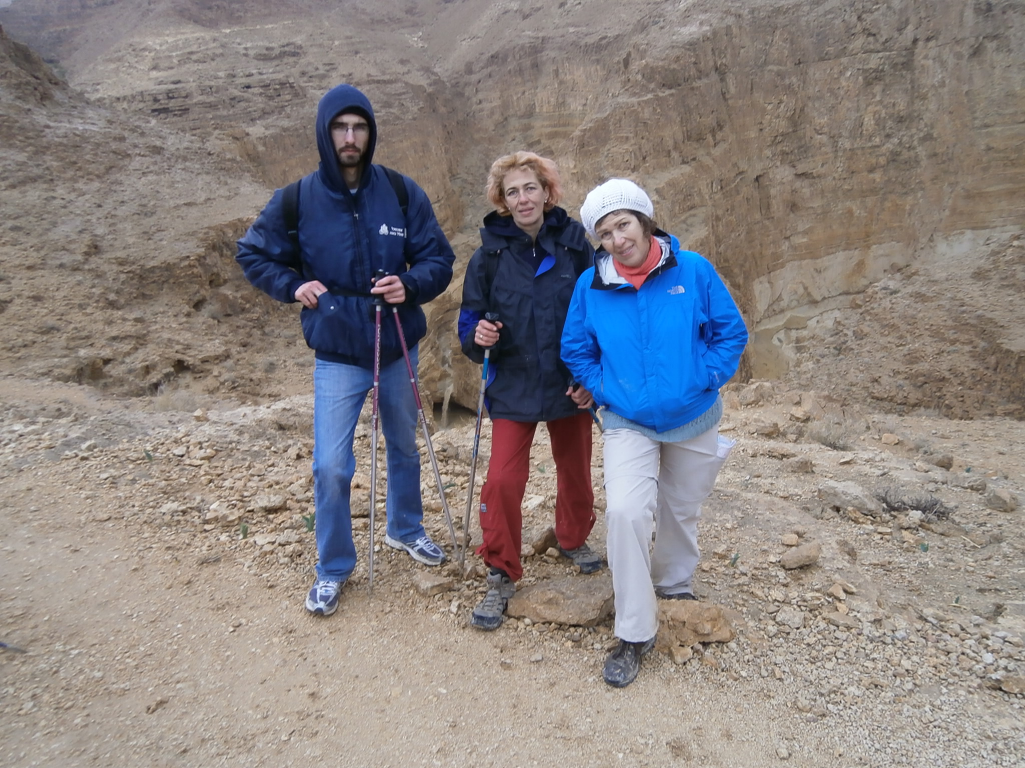 Точно в это же время подъехала еще одна небольшая компания любителей пошататься по пустыне, и среди них была Илана, с которой я познакомилась в организованном треке в Негеве. Узнав о нашем плане, они удивились: «Как же вы собираетесь переходить нахаль Цеелим?» Cказали, что это — опасно и, кстати, были правы. У них программа была более благоразумная: прогуляться по красной тропе над ручьём и не переправляться через никакие текущие нахалим. Пожелали друг другу удачи, и каждый пошел своим путем.