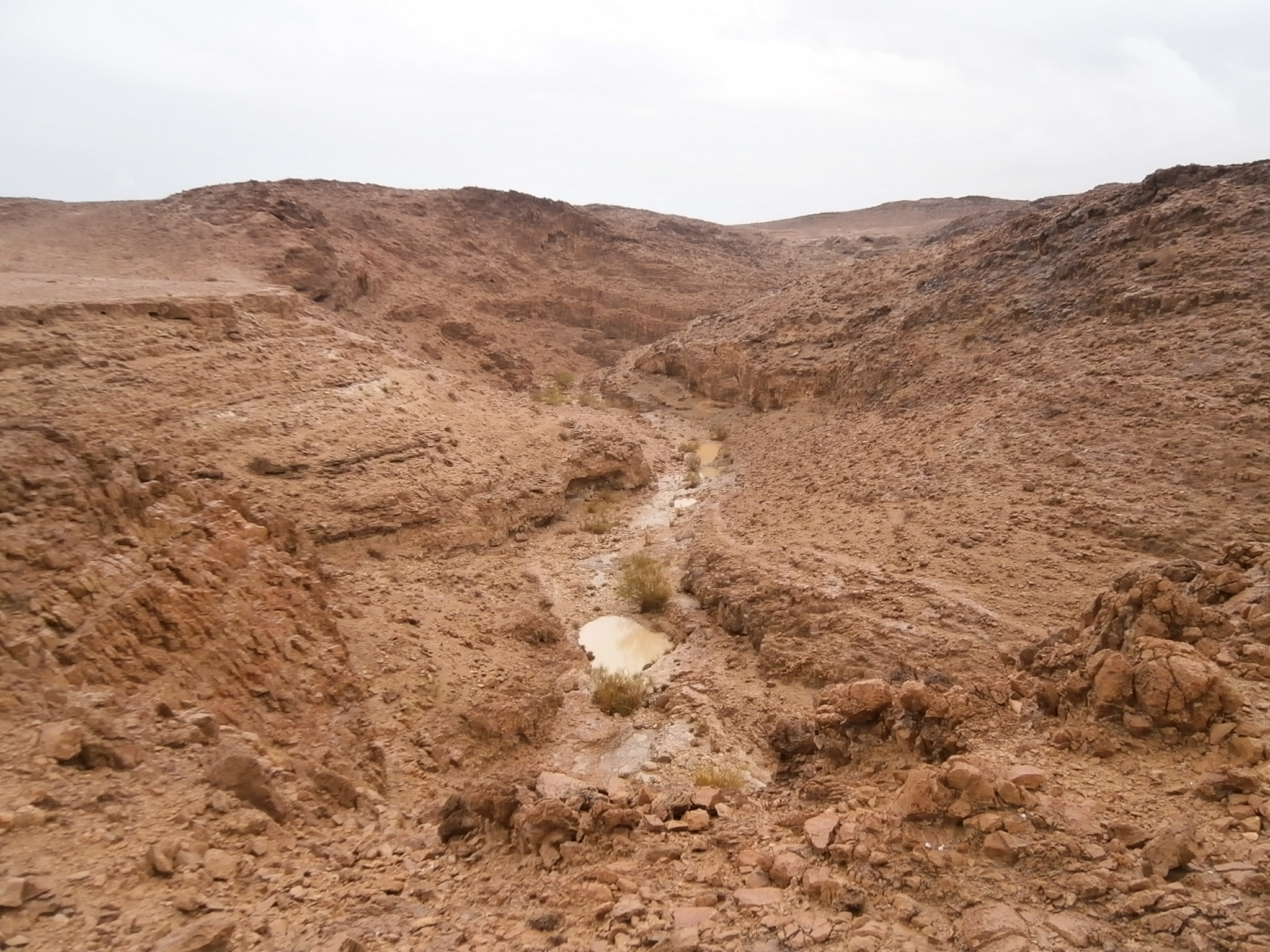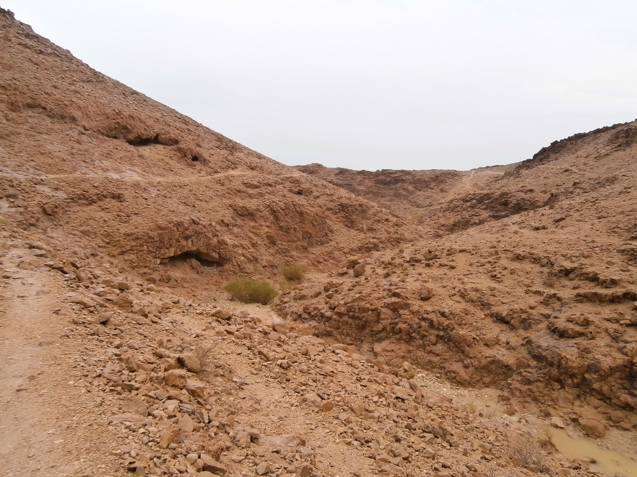Преодолели крутой, но недлинный склон. Прошли по тропе с видами на неглубокие пустынные ручьи, в которых после шитафона остались гэвим, заполненные водой.