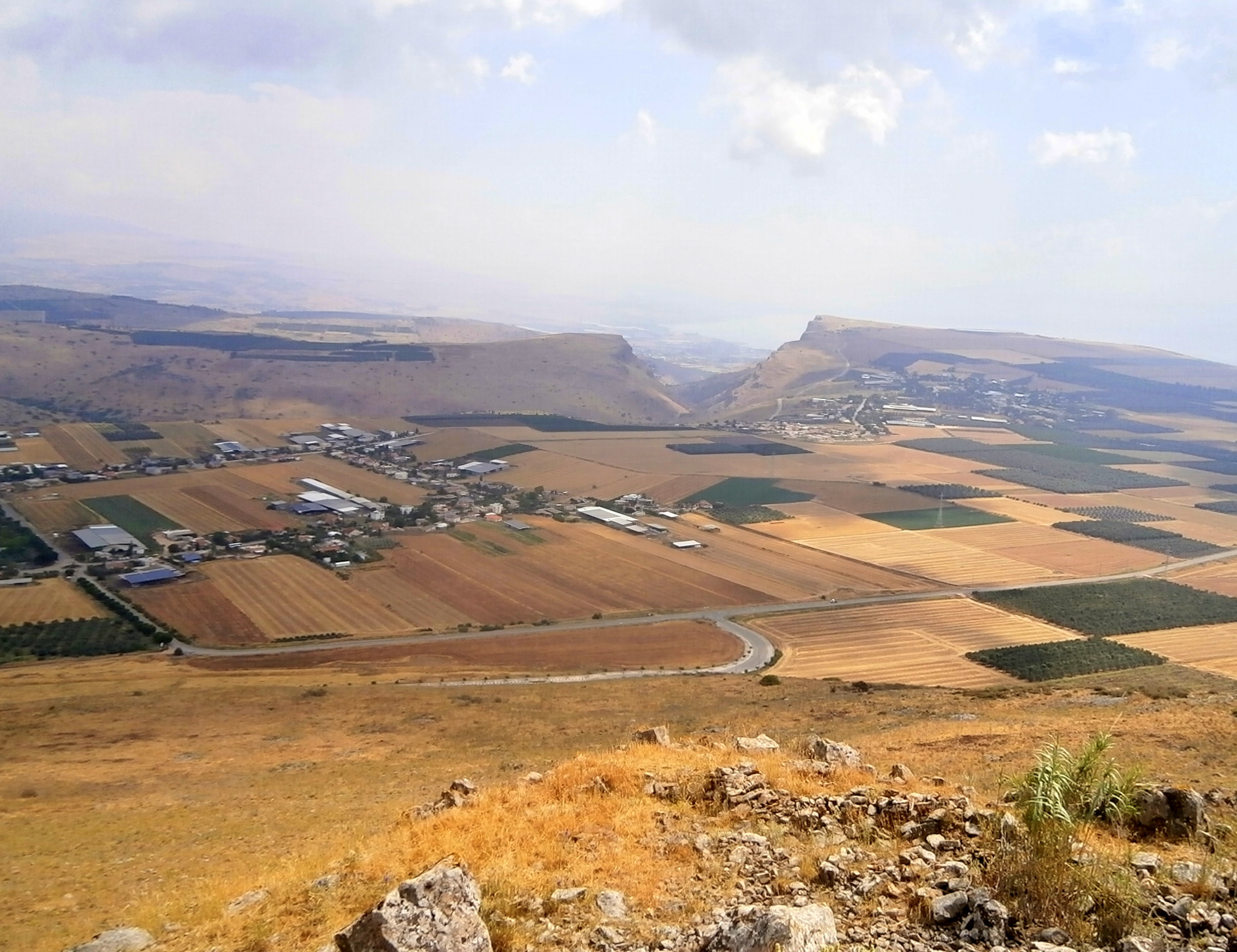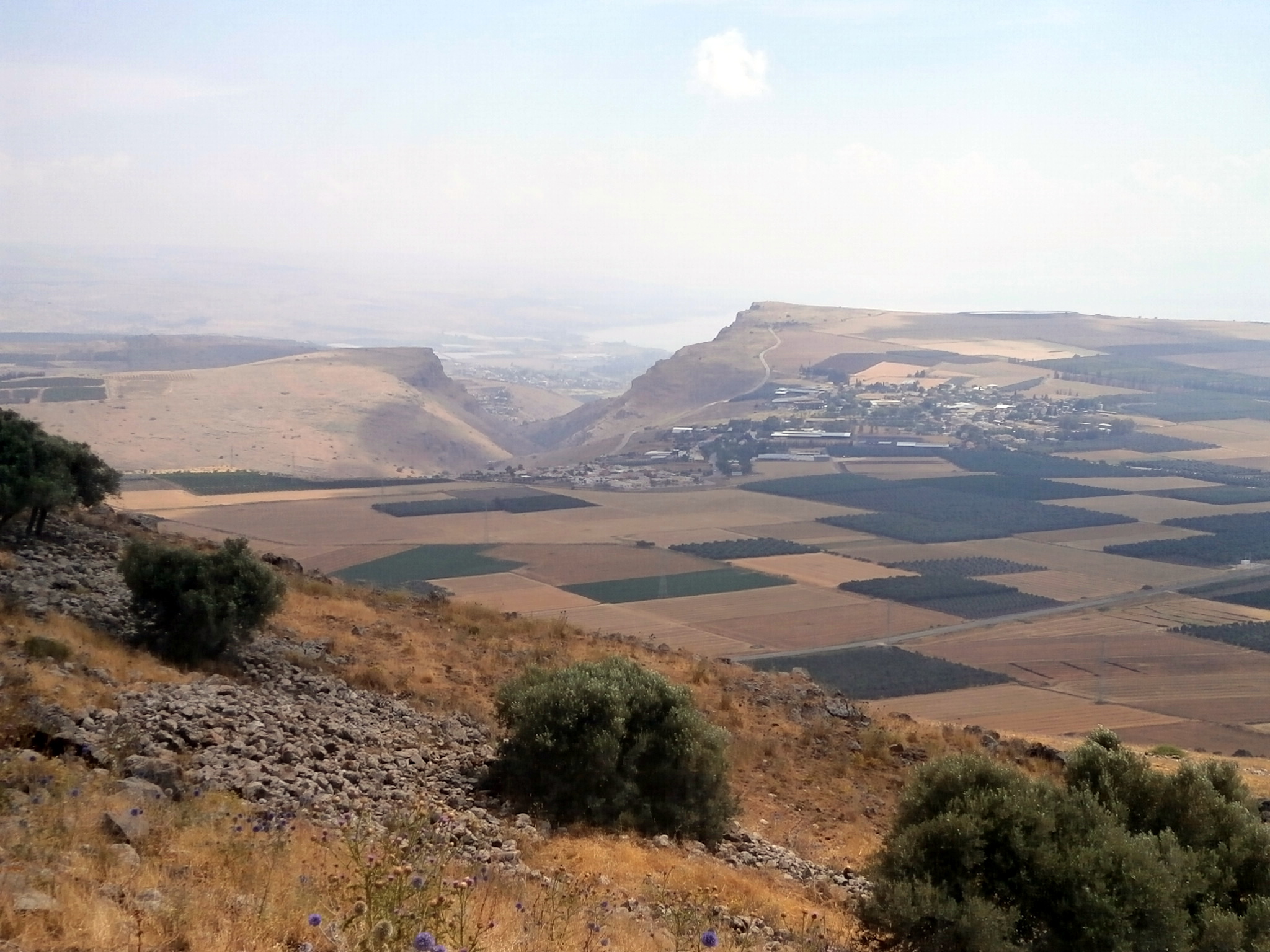 Вскоре мы подошли к холмам совсем близко и повернули с черной тропы на синюю. Здесь, у Карней Хиттим, происходил известнейший в мировой истории бой между мусульманской армией Саладина и крестоносцами (Битва при Хаттине). А сейчас на вершине холмов  —  тишина и покой, и открываются фантастические виды на Кинерет и гору Арабель.