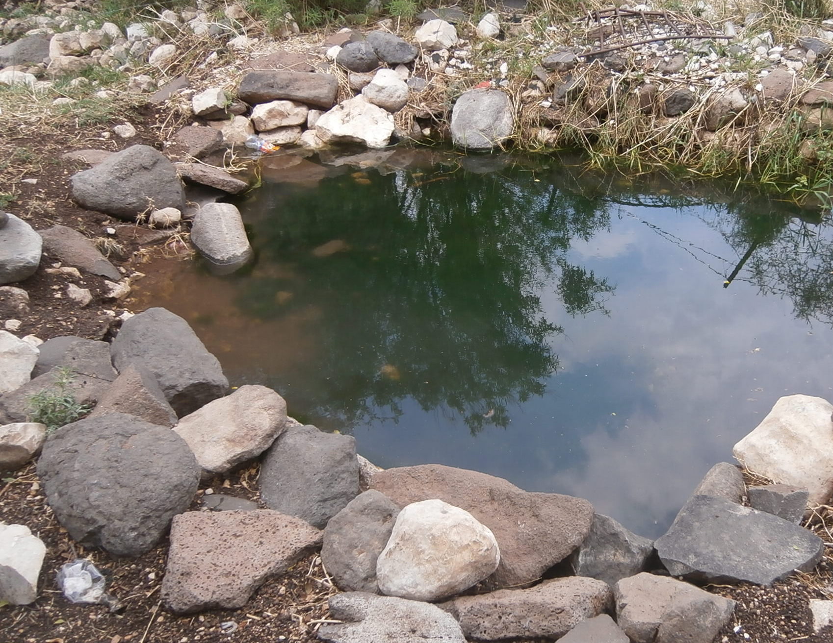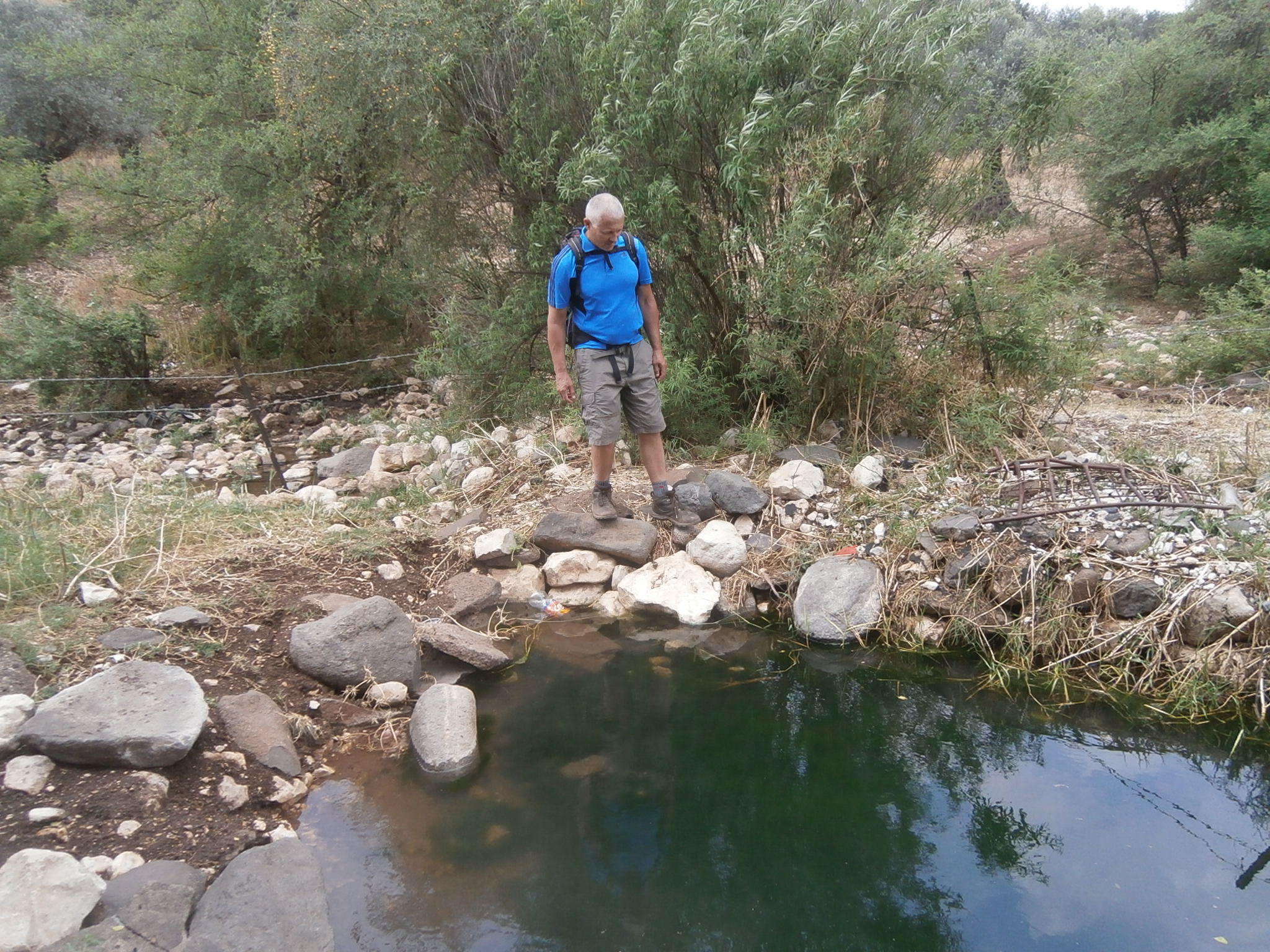Мы продолжили свой путь, дошли до зелёного цветущего русла нахаля Арабель, повернули направо и пошли по руслу нахаля. Километр неспешной ходьбы, и мы у источника Эйн Нитай. Воды в нём совсем мало. Однако можно поставить ещё одну галочку в книжке про 365 источников.