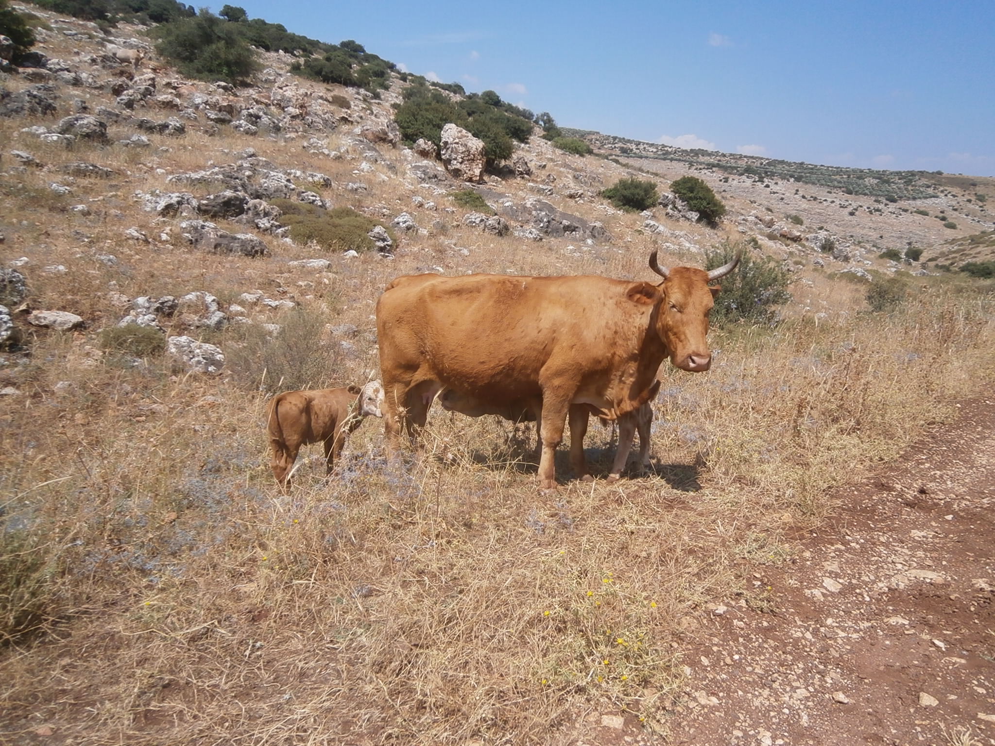 Проведя несколько минут у источника, мы повернули в обратную сторону, и долго шли среди бескрайних просторов, полей и холмов, изредка встречая коров с совсем маленькими телятами.