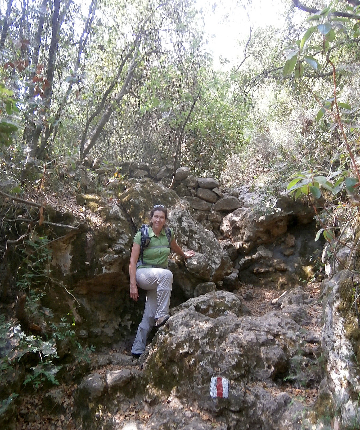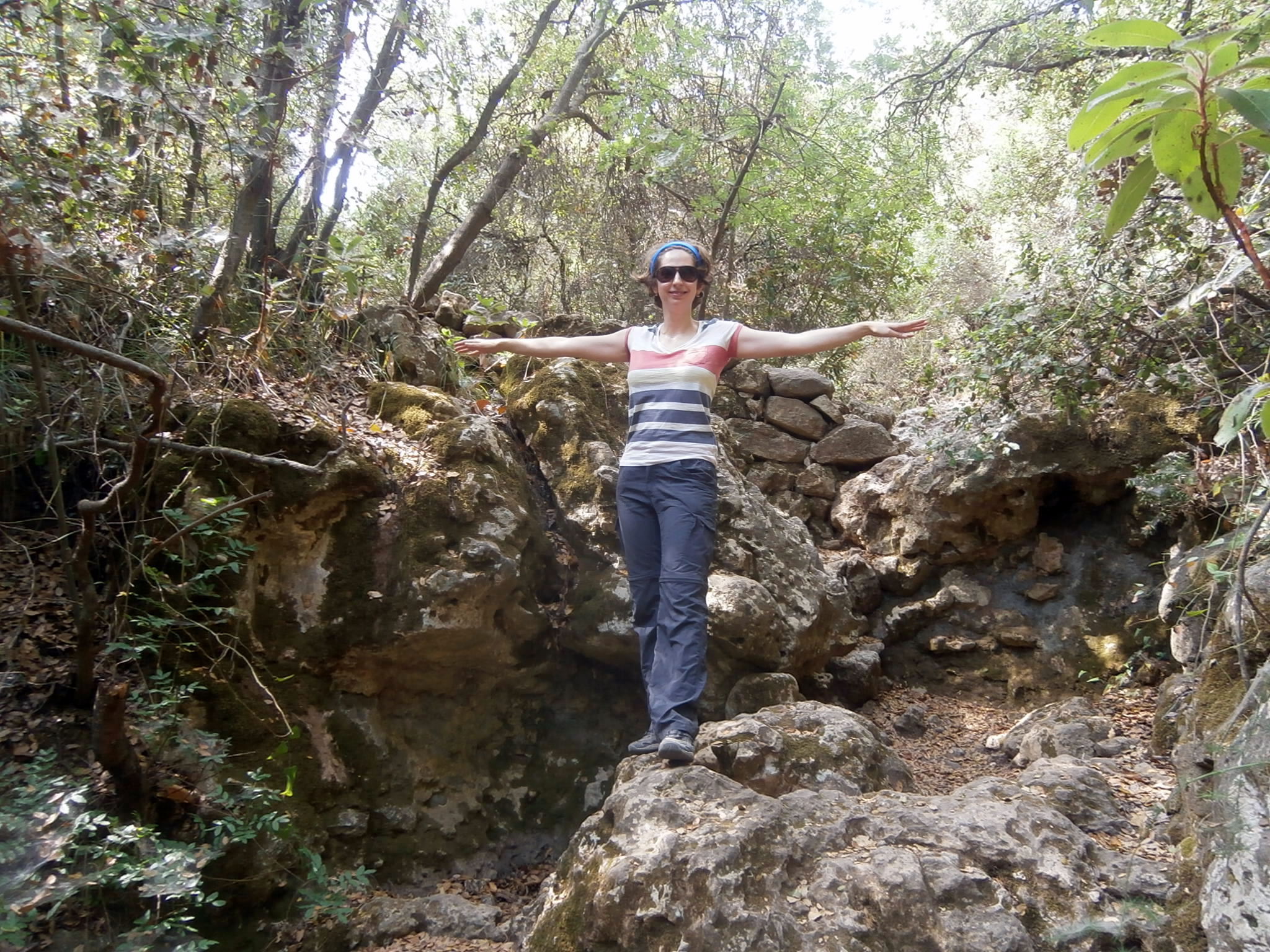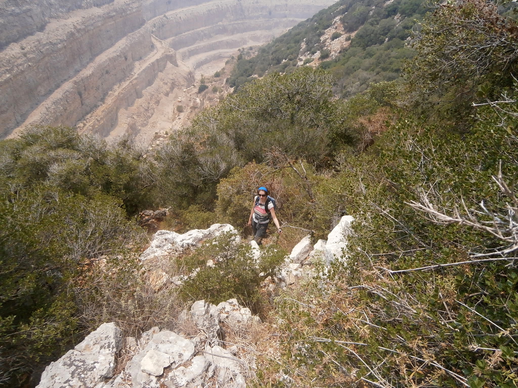 Приятная прогулка среди леса, спуски с невысоких ступеней-водопадов, подъём, борьба с… колючками и, как награда, великолепный вид на горы, на Хайфу и на карьер.