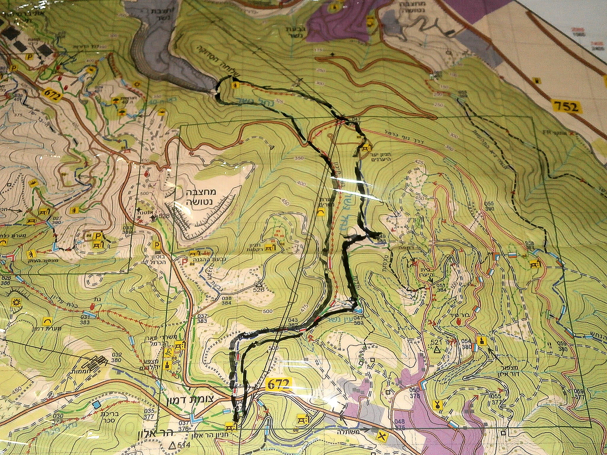На стоянку Aр Алон, где нас ждала машина, мы возвращались не по нахалю, а рядом с ним, по замечательным лесным дорожкам. Размеченной тропы там нет, но есть ясные и чёткие тропинки, по которым гоняют опытные велосипедисты. Нужную нам тропу мы без труда нашли в дальнем конце большой стоянки, расположенной недалеко от шоссе Нешер, рядом с видовой дорогой Ноф-ха-Кармель.
