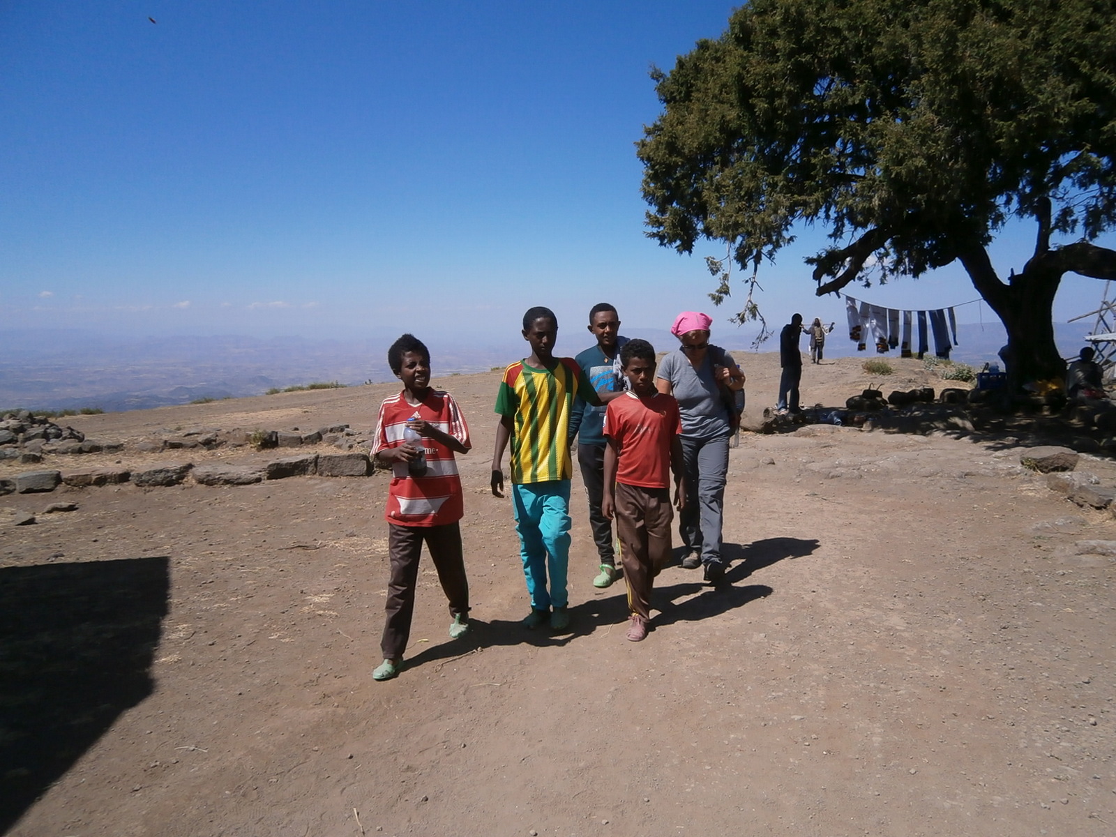Постепенно тема разговора изменилась. Мальчишки стали настойчиво предлагать, чтоб я почистила у них ботинки за приличную плату, когда вернёмся. Вскоре Томас пошёл быстрее, а Матио остался и «привязался» ко мне не на шутку. Теперь он хотел, чтобы я стала его спонсором и оплатила учёбу в Израиле. Но если не это, то хотя бы купила ему новые сандалии за 100 бырр. Просил, чтоб пригласила его сегодня на обед в ресторан. Мне такой поворот событий совсем не понравился. Он всё время болтал и проявлял чрезмерную предупредительность — предлагал руку, чтобы помочь на подъёме. Это стало мне реально мешать. Очень хотелось отвязаться от них, но какой там! Они не отходили ни на шаг в надежде получить хоть что-то. Их по-настоящему жалко. Они бедные, живут в нищете, хотят учиться и узнавать мир. Денег у них нет. Но ведь таких, как они, десятки миллионов. В Симиенских горах мы видели детей, которые выглядели намного несчастнее, чем эти: в рваной заплатанной одежде, худые и голодные. Невозможно всех спасти от нищеты. И человек должен иметь самоуважение. Если у него чего-то нет, смириться с этим, а не превращаться в занудного попрошайку. Вот у Эноу это самоуважение есть. Он ничего у нас не просил. А когда всё-же осмелился попросить куртку, предварительно спросил: «Можно задать вопрос?» И когда ему ответили, что, к сожалению, куртку мы дать не можем, сказал, что нет проблем. И больше к этой теме не возвращался. В отличие от него, эти двое братьев, особенно Матио, обнаглели вконец. Стали просить деньги, чтобы оплатить жильё, которое они снимают, так как родители их живут в деревне, где нет школы. Слово «нет» не понимали. Возвращались к одной и той же теме, как говорится, брали измором. И клянчали подачки без перерыва. А вокруг была красивейшая природа. Стояла прекрасная погода. Но всем этим я не могла наслаждаться, так как эти двое не давали мне ни минуты покоя. Короче, поход на гору был немного испорчен. Но не беда — мы глубже узнали местную ментальность.