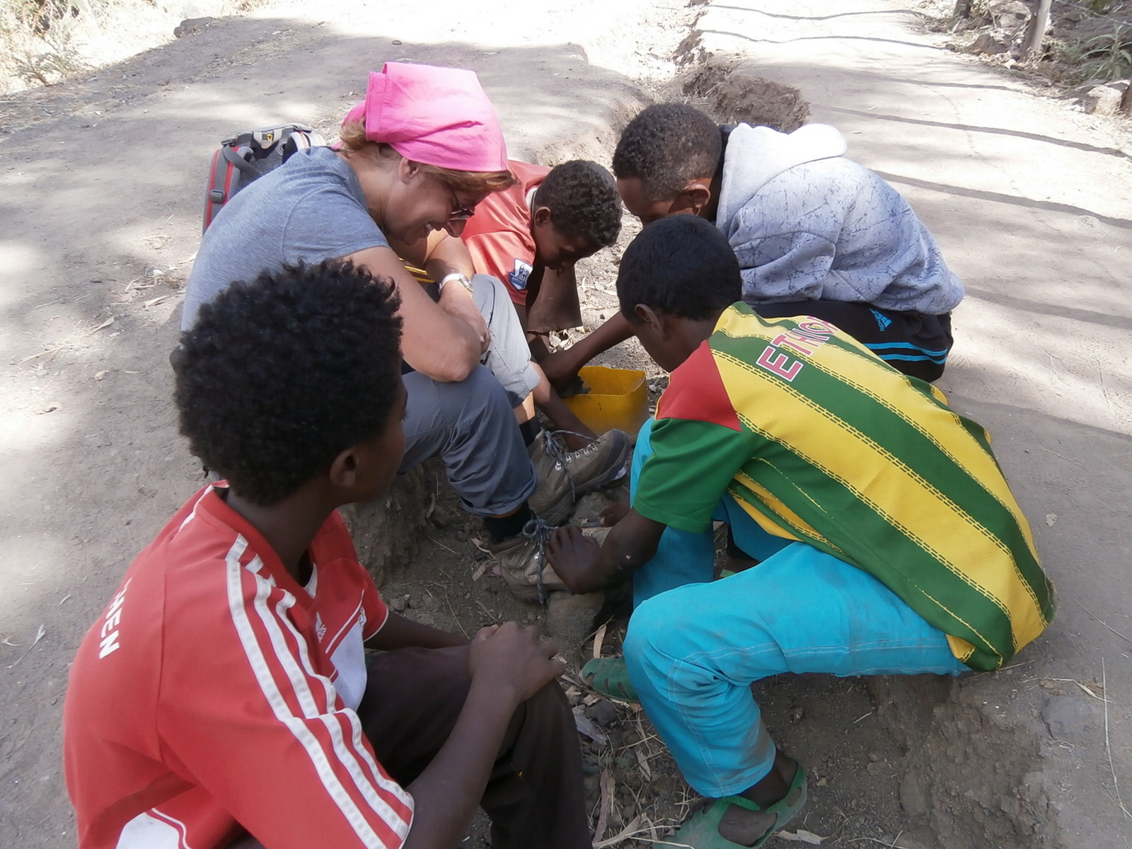 И мы пошли назад. Приставалы немного поутихли, и обратный путь прошёл спокойнее. Но Томас и Матио всё ещё не оставляли надежды почистить нам обувь за 100 бырр. Фаня пошла на уступку и почистила ботинки за 50 бырр. Я наотрез отказалась, и эти двое обиделись. Сказали, что Фаня — хорошая ( в чём я целиком с ними согласна 🙂 ), а я — «так себе».