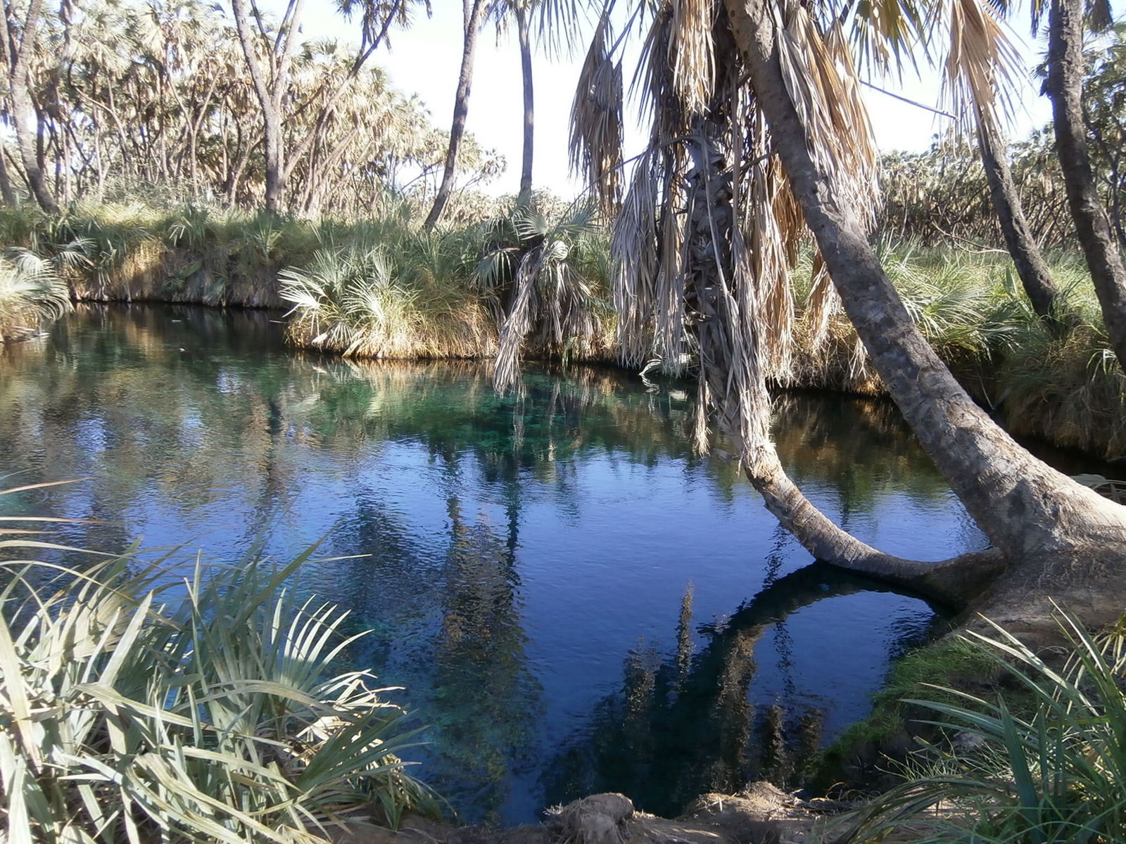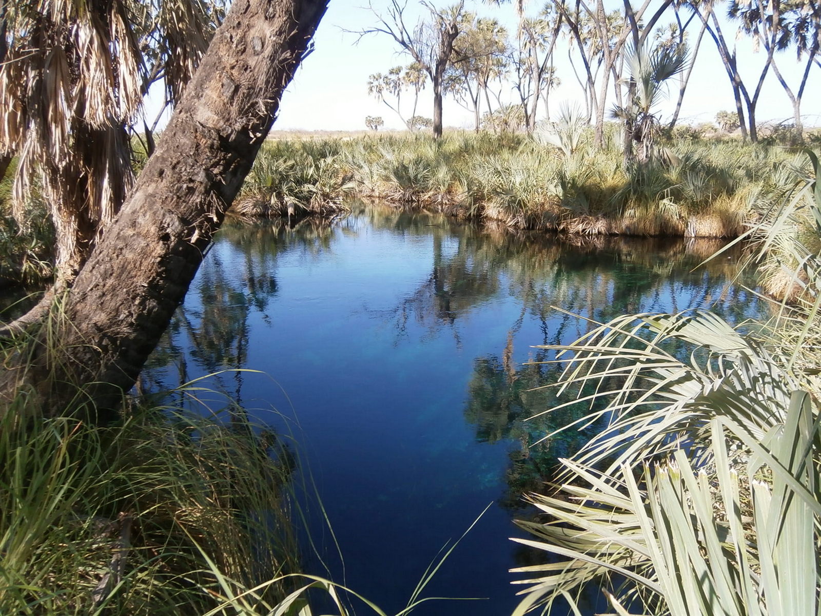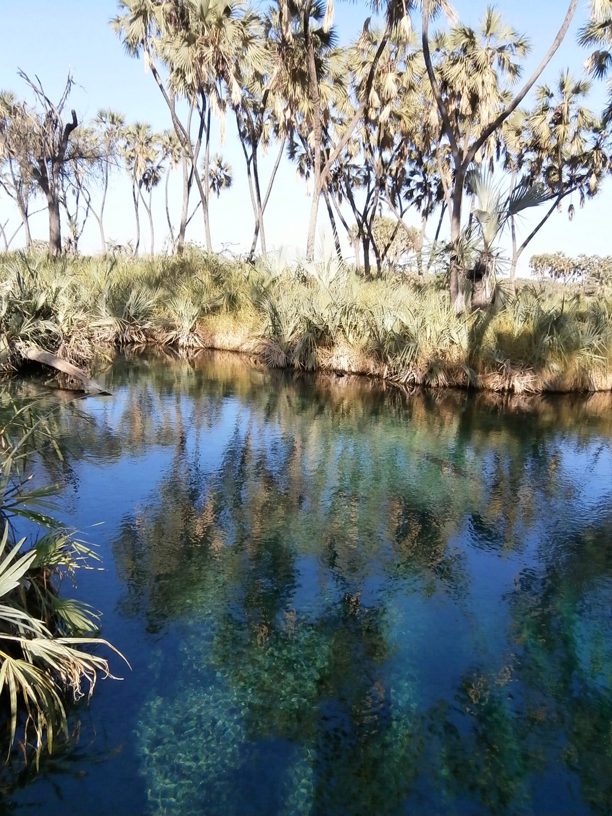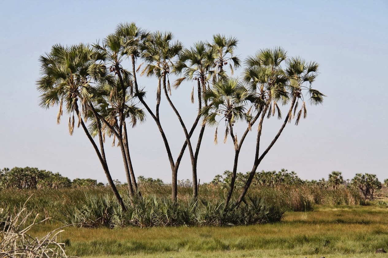 Потом мы вышли из джипа и пошли пешком по направлению к горячим источникам. Вокруг росли дум-пальмы, и их было немало. Это особый вид пальм, они ветвистые, ствол их раздваивается. Есть несколько таких пальм возле Эйлата, это самые северные экземпляры в мире. А здесь их видимо-невидимо.