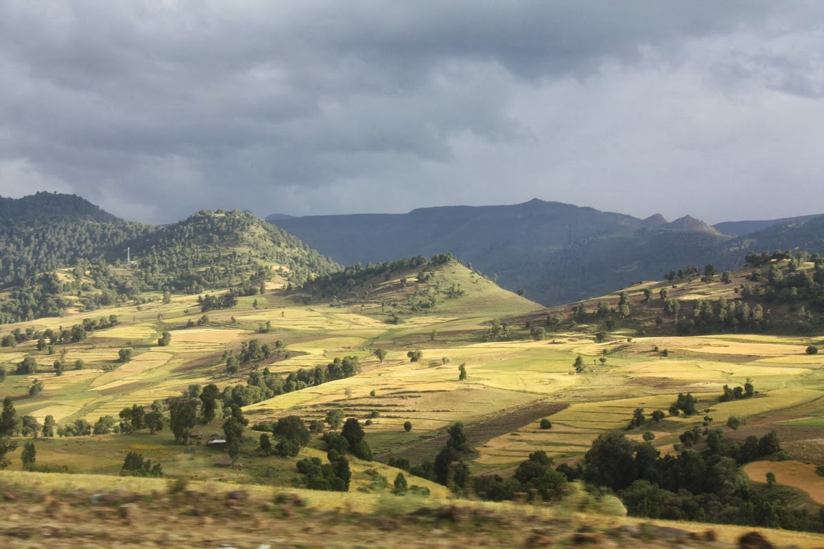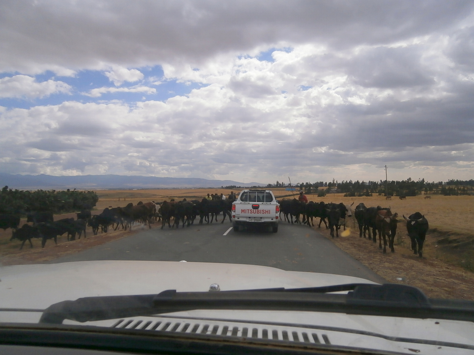 После Назарета повернули на  юг и наконец распрощались с перегруженной трассой. Езда по дорогам Эфиопии — это очень долгий, но очень интересный для туриста процесс. Шоссе принадлежит не машинам, а коровам, козам, овцам и местным жителям. Только немного прибавил скорость — ан нет, тормози, впереди стадо коров (овец, коз) посреди дороги. Расслабляться водителю нельзя ни на минуту. Того и гляди, кто-нибудь окажется под колёсами. Медленно, но мы всё же едем. Пейзажи за окном очень красивые, словно сошли с известной картины «Рожь».