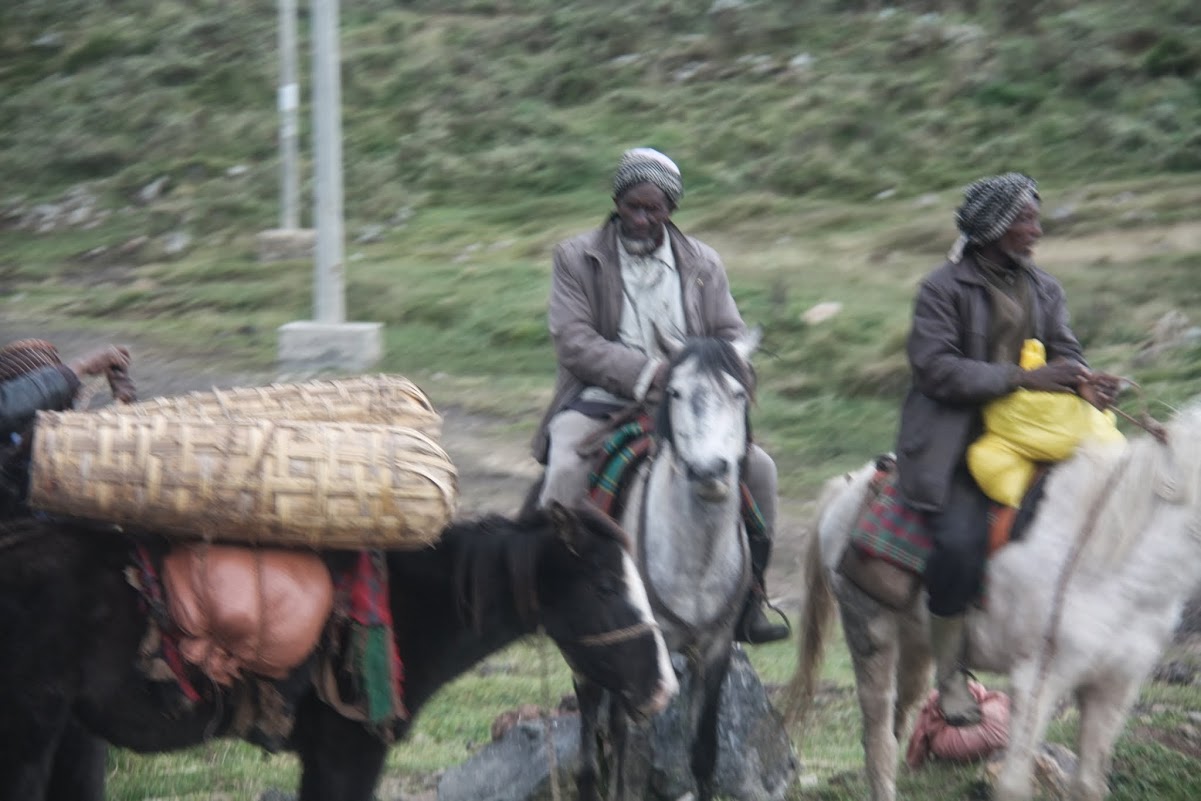 Купили в соседнем киоске авторучку (3 бырр) и поехали дальше. От этого места осталось примерно 100 км до города Гоба. И это была самая красивая часть нашего сегодняшнего пути, а возможно, и самая красивая дорога во всём путешествии по Эфиопии. Мы ехали вдоль  живописного ущелья, поднимаясь всё выше и выше. За окном джипа — величественные горы, покрытые лесом. Затем леса уже не было, мы поднялись очень высоко, 3700-4000 метров.
