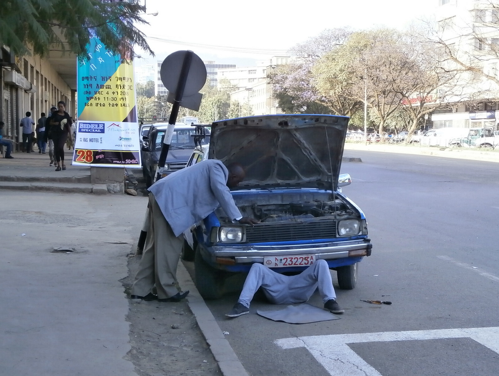 Сегодняшний день начался с завтрака в гостинице Raz Hotel в Адис-Абебе. Публика была солидная — бизнесмены при костюмах и при галстуках, многие очень даже симпатичные. Подошел Теди, наш координатор, владелец фирмы по организации путешествий по Эфиопии. Познакомились с ним (до этого была лишь переписка и общение по телефону) и с шофёром джипа, с которым нам предстоит путешествовать 8 дней. Драйвера звали Брехоу, это был молодой парень, лет 25-ти, неплохо знающий английский.