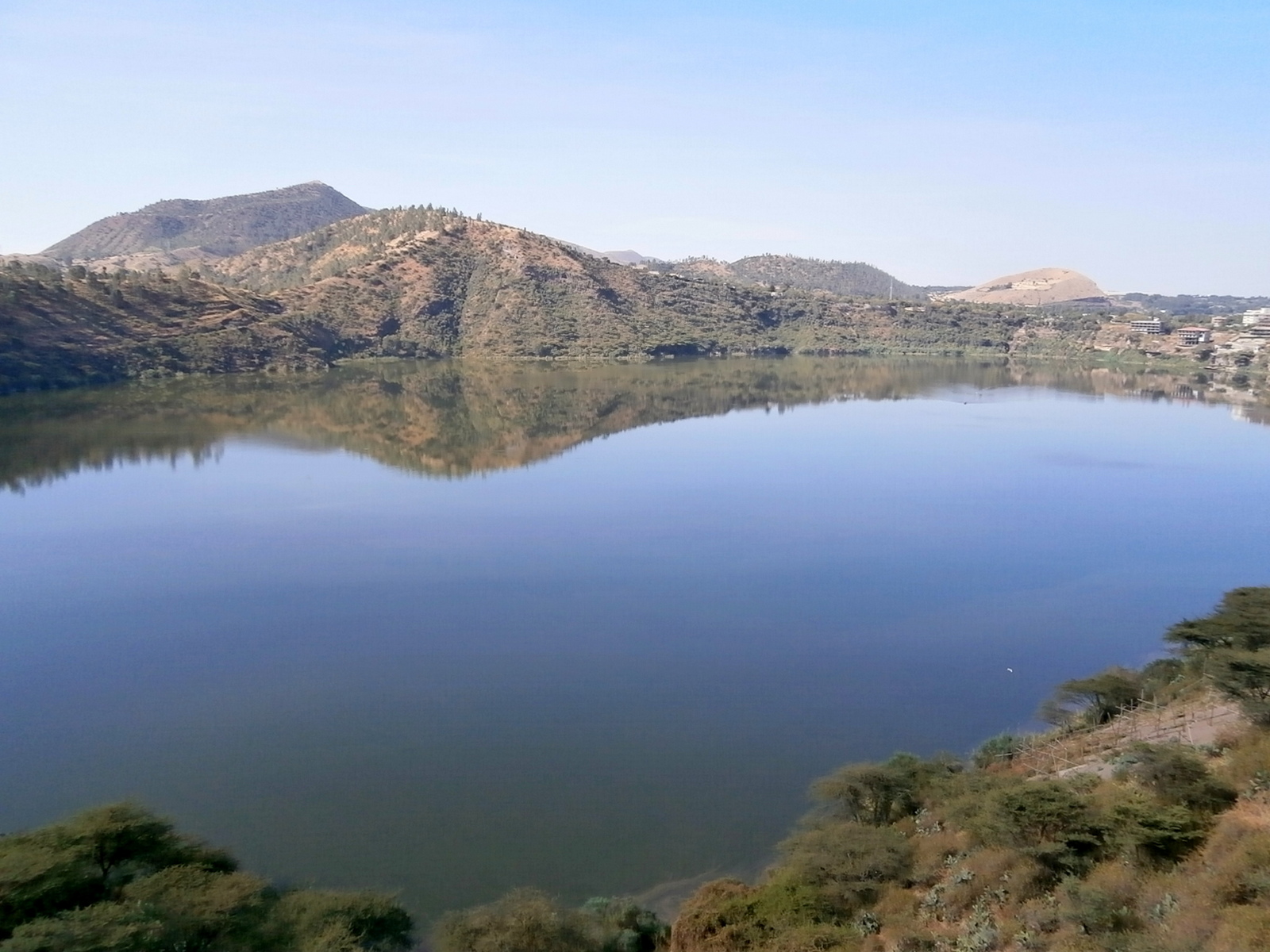 Озеро, как видно образовавшееся в кратере потухшего вулкана, немного напоминало наш Биркет Рам.