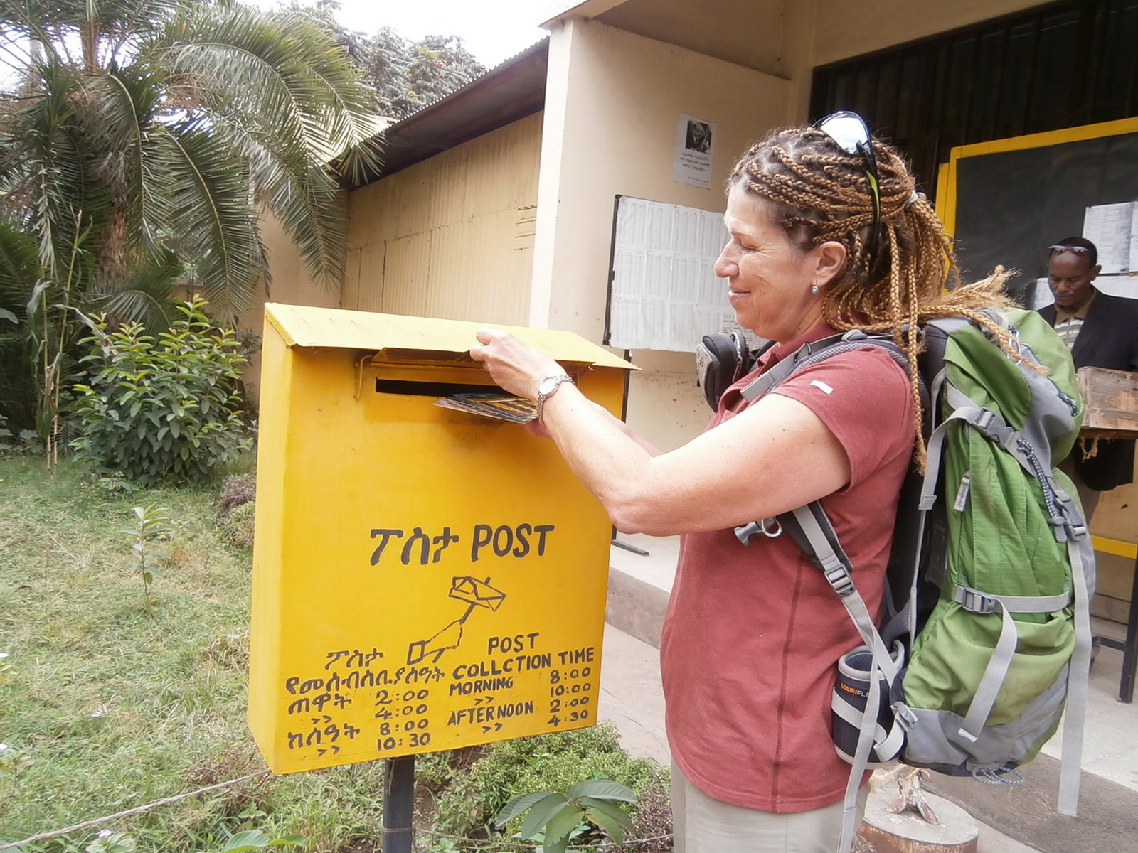 В городе со знакомым названием Назарет заехали на центральную почту и, ностальгируя по прежним временам, купили эфиопские марки и отправили на родину открытки с видами Лалибелы, припасённые ранее. Весь процесс занял 40 минут, так как у нас была одна ручка на двоих (во второй закончились чернила, слишком много писали в дневниках). Но подходить к служащей почты и просить у неё ручку : «Give a pen!», как  сплошь и рядом просят ручки у туристов местные дети, мы не стали.