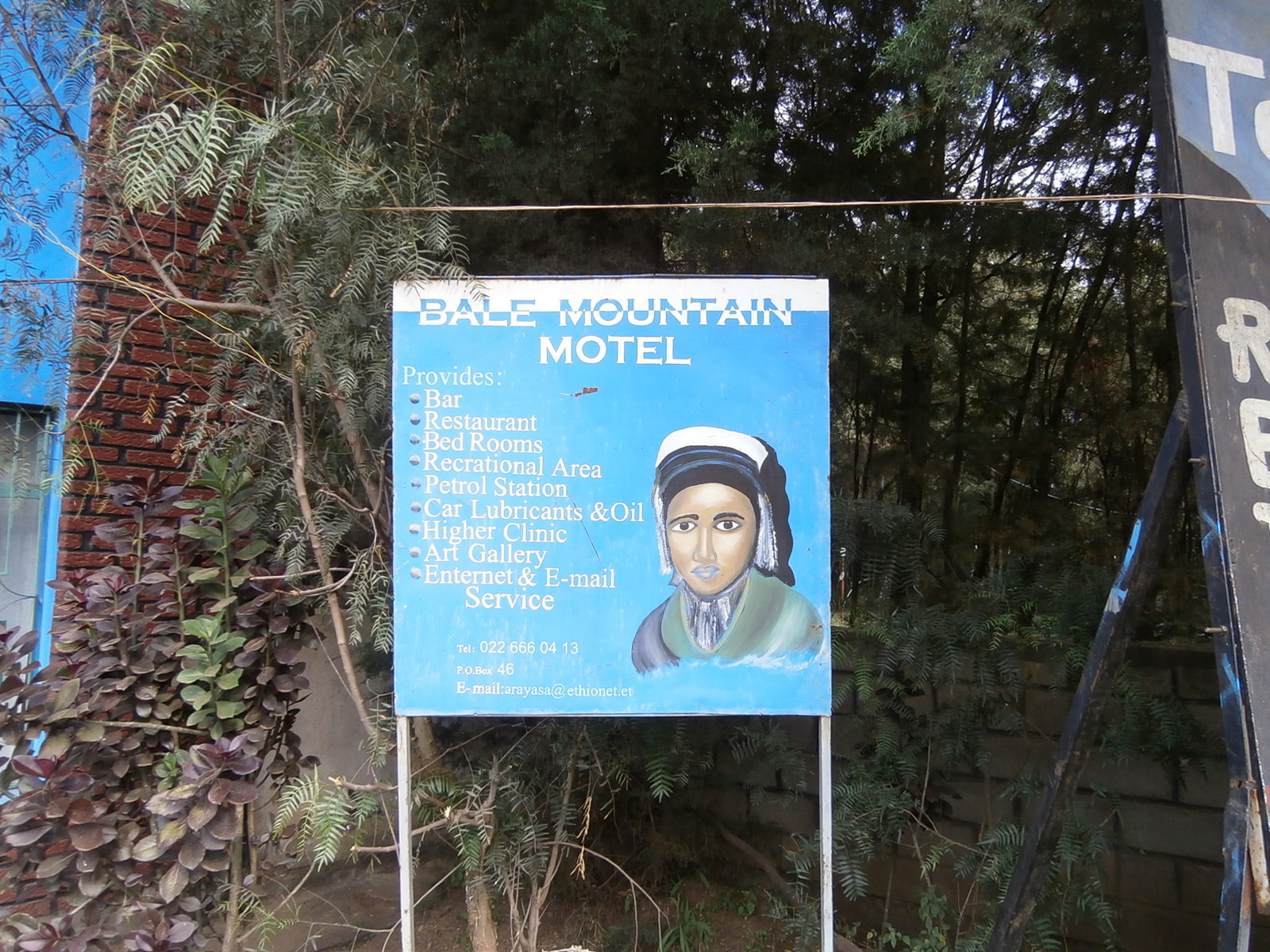 В городе Assela сделали остановку и покушали супца в ресторане при гостинице, принадлежащей известному эфиопскому спортсмену. По пути выяснили, что в городе Robe, где мы хотели ночевать, нет свободных мест в гостиницах. Заказали по телефону гостиницу в городе Goba, что неподалеку. Брехоу помог при заказе, разговаривал со своими на своём языке.