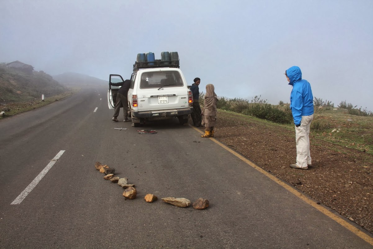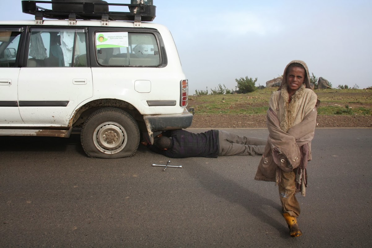 Итак, в 7:00 отправились в дорогу. До города Робе, 10 километров, ехали по асфальтированному шоссе. Сразу за Робе асфальт неожиданно для нас, но не для драйвера Брехоу, кончился, и началась грунтовка. По ней и предстояло ехать 100 километров в течение 4-х часов. Приготовившись к длительной поездке, мы стали наблюдать за тем, что происходит за окном…