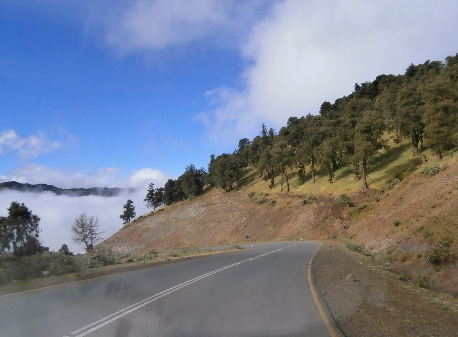 Встреча была очень трогательной! А тем временем Брехоу закончил замену колеса, и мы поехали дальше. За окном картинки: горы, леса, облака, спустившеся в каньон, хижины у дороги, маленький ребёнок в расстёгнутом пальтишке, надетом прямо на голое тело…