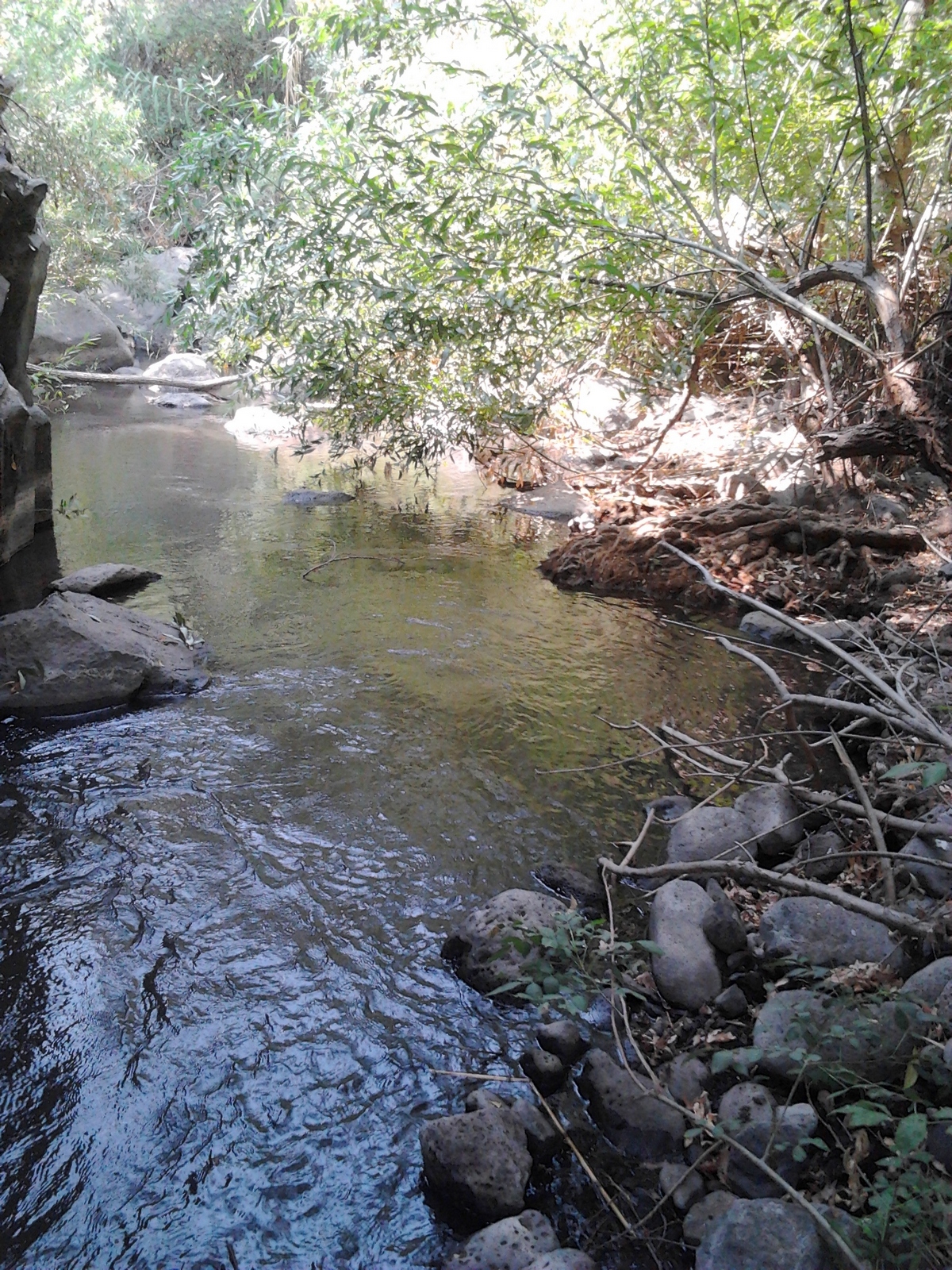 Также приходит в голову мысль о том, что когда мы зашли в нахаль и не были замечены пакахом, не стоило так быстро делать привал, а нужно было уйти, как можно дальше. Тогда бы никакой красавец-спортсмен-паках-Даниэль нас бы не догнал. А если бы и догнал, мы успели бы увидеть намного больше красоты. Хотя, с другой стороны, и наказание за это могло бы быть намного строже. Вот такие выводы. Получилось, как получилось. Несмотря на неудачу на Мешушим, этот жаркий день на Голанах был богат впечатлениями, а впечатления мы и ищем. День был интересным и, несомненно, обогатил нас жизненным и походным опытом. Побывали на природе и пообщались с разными людьми. Эдакий природо-общественный день… К тому же, нам всё-таки удалось увидеть несколько красивых уголков на нахаль Мешушим. И я не теряю надежду когда-нибудь туда вернуться и пройти его весь 🙂
