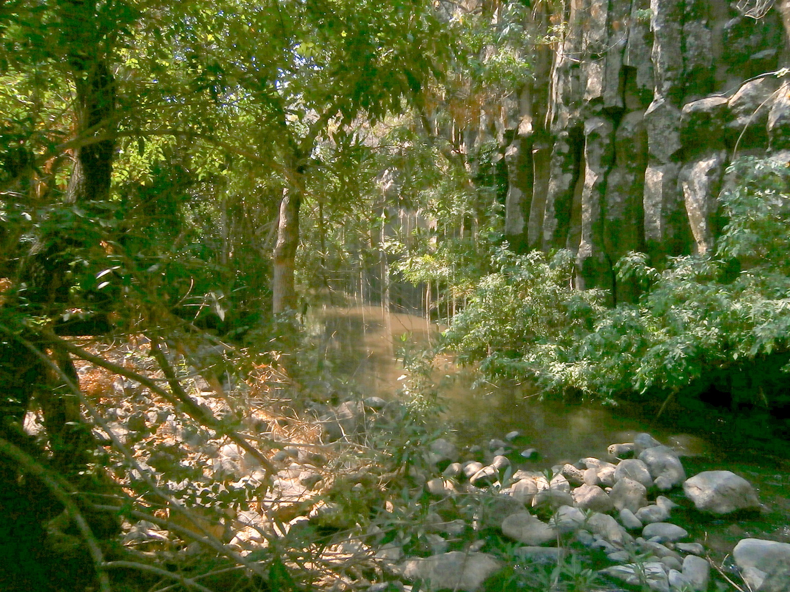 Здесь, в прохладе деревьев, рядом с тихой прозрачной водой, мы поздравили именинника и подняли за его здоровье бокалы с каким-то немыслимо вкусным ликёром. А затем продолжили поход. Следующим номером нашей программы был нахаль Ехудия, протекающий неподалеку. Мы забрались по невысокой скале на противоположный берег нахаля Батра:
