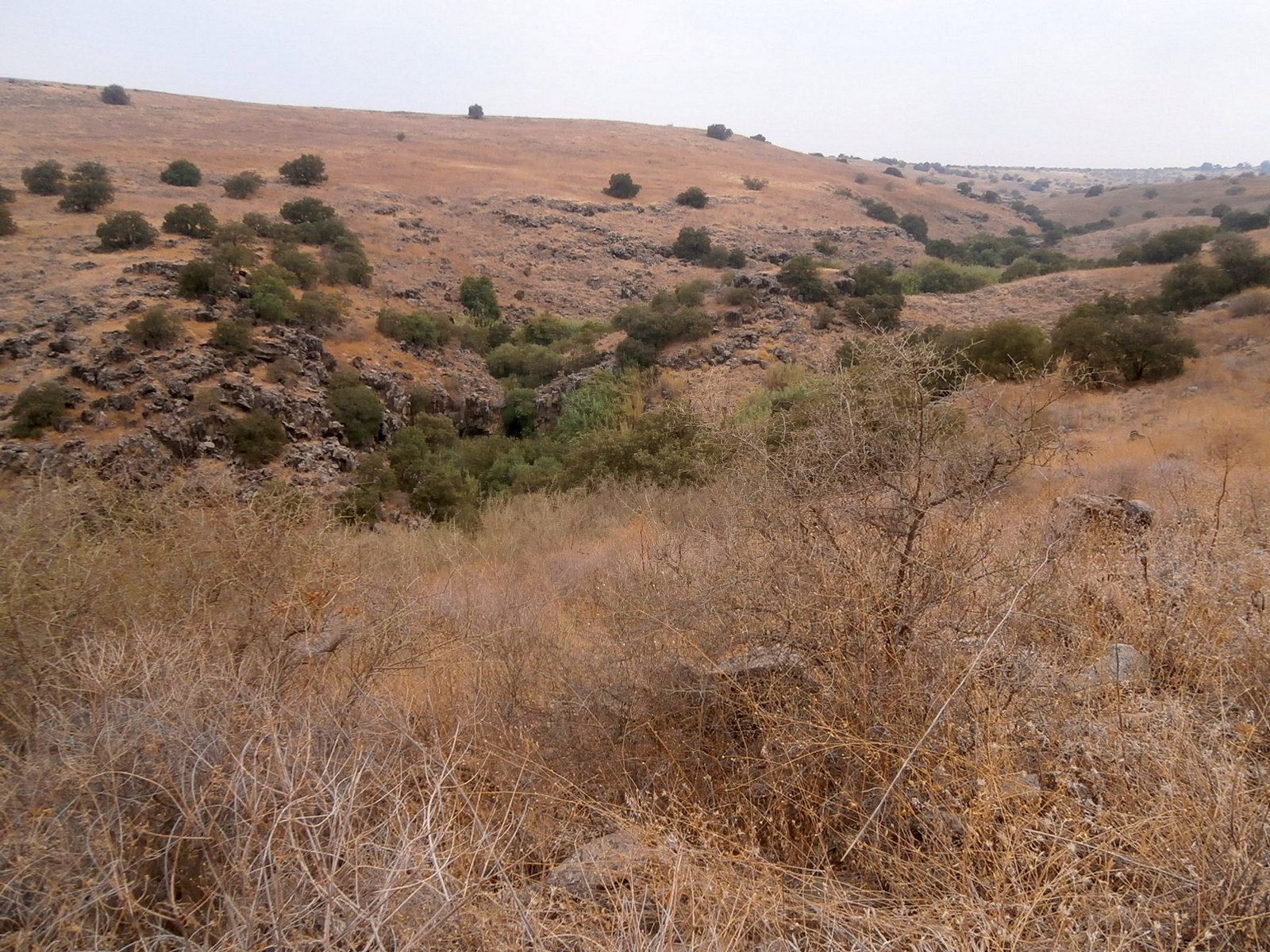 Ровно через неделю после приключений на нахаль Мешушим мне посчастливилось пройти ещё один маршрут на Голанах, частично новый и доселе неизвестный, а частично хоженный и знакомый, и посетить очаровательные новые, а также и хорошо забытые старые уголки природы. Организатором мероприятия был один мой знакомый, досконально знающий север Израиля вообще и Голанские Высоты в частности, и было оно приурочено к его дню рождения. Этот поход, как и предыдущий на нахаль Мешушим, был связан с вторжением в места, которые общество охраны природы не хочет, чтобы мы посещали. Однако места эти — красивые и тянут к себе, как магнитом. Трудно противостоять соблазну, вот мы и отправились, чтобы их увидеть. И было нас 9 человек.