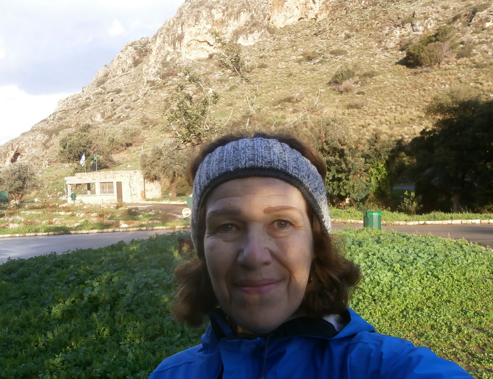 Дождь лил минут сорок и, наконец-то, закончился. Это было в час дня, и я как раз дошла до мицпе Офир, пройдя 10,5 км, половину маршрута. На мицпе Офир по шабатам обычно многолюдно, поскольку там есть различные аттракционы для детей и взрослых. Можно спуститься с вышки снеплингом или пройти со страховкой по тонким доскам высоко над землёй. Но сейчас здесь ни души. Так странно… Я нашла разметку Швиля, пошла по дороге, и вскоре меня нагнал джип. Пара, сидящая там, люди моего возраста, спросили, что я делаю, когда идёт дождь. На что я им ответила: «Просто продолжаю идти. Чай, не сахарная, не расстаю…» Но с этого момента дождя больше не было, небо прояснилось, засияло солнышко и даже пришлось достать солнечные очки.